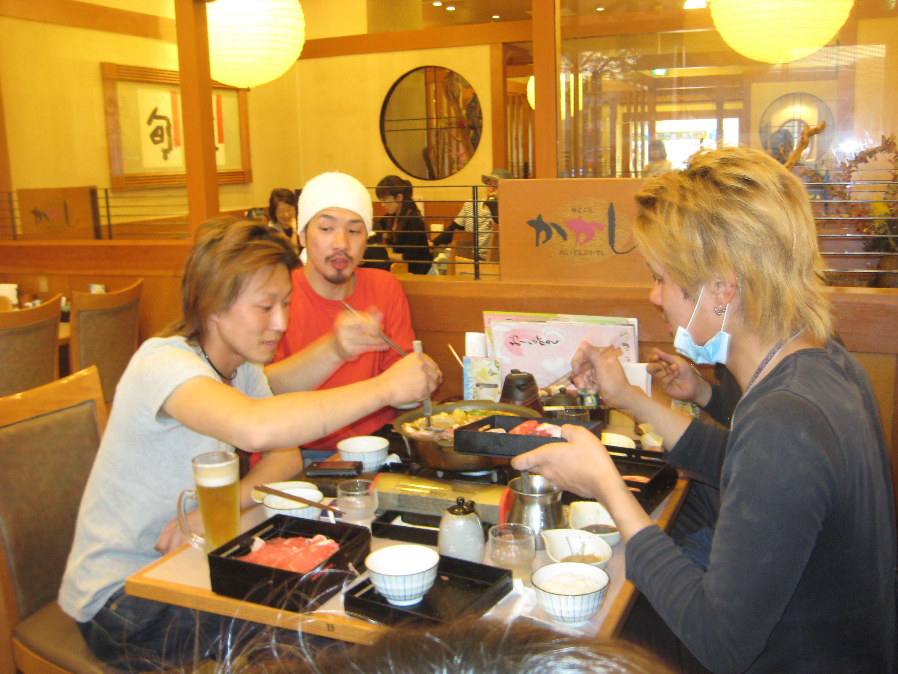 5月18日(水)入社祝い 2011.05.23 しゃぶしゃぶ食べ放題 1人前 ¥1,449 !!! 頭にタオルをまいているのが 新入社員の22才 福田 真吾くん 左が社内一ゴルフが上手な 米谷プロ(笑) 右のマスクをしているのが三田のヤンキー?? 小西くん 70分間 8人でお肉を20人前いただきました。
