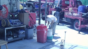 超音波探傷(UT)検査! 2011.07.19 こんにちは、杉本です。 先日の日曜に自社のガレージにて合同でUT検査をおこないました。 岸下工業さんのポンプ(ブームを伸ばしているのです。) 坂井ポンプさんは、真ん中にあるツートンのポンプ。 右はしの黄色は、ワイ・エム・エフさんのポンプです。 一台、一台入念に特殊な機械で検査されてました!! 検査待ちの時間に掃除をしてくれてるのは、我が社の志築(しずき) です。 休日にもかかわらず、いろんな人が日々の安全の為に頑張ってます!!