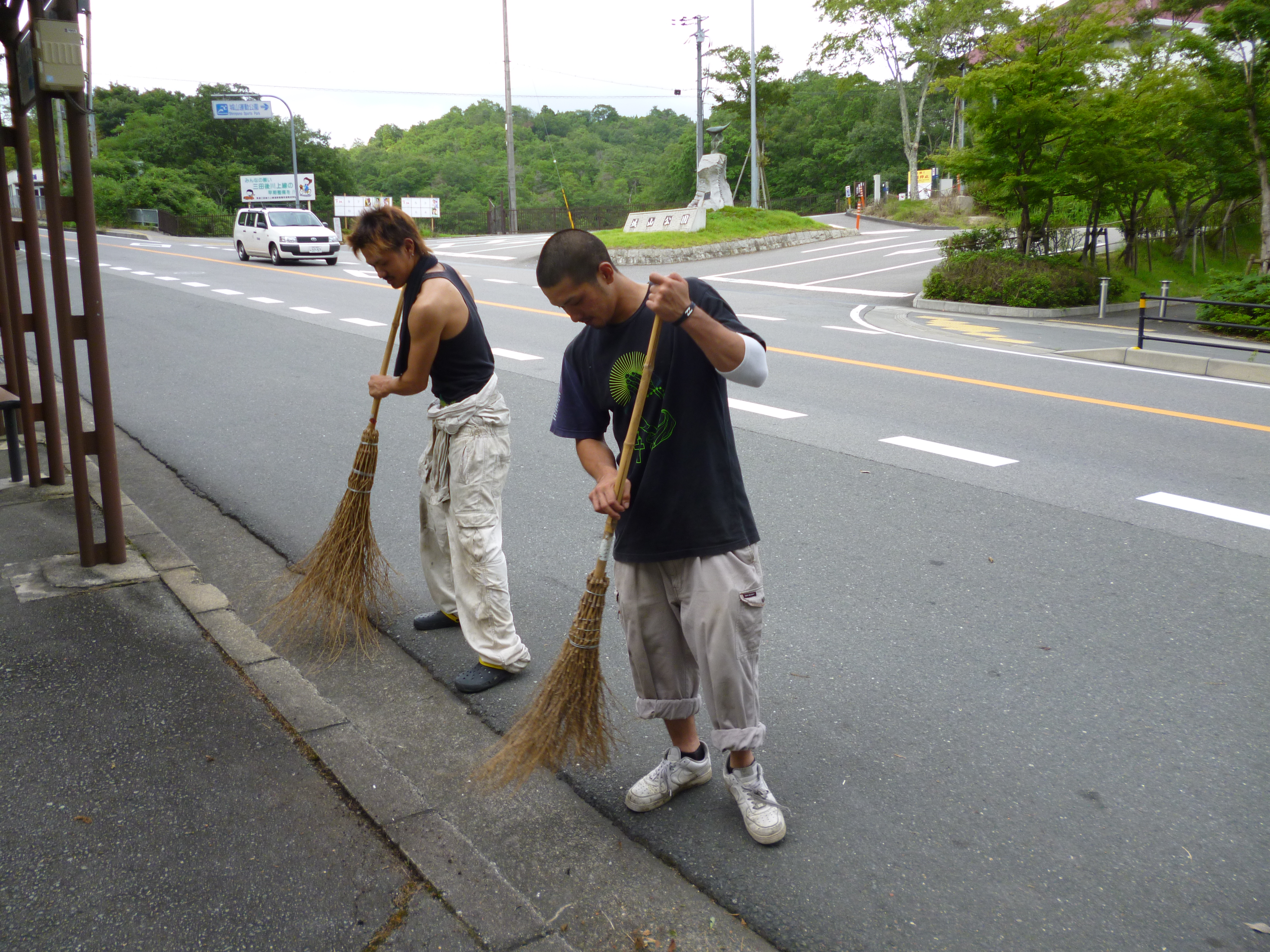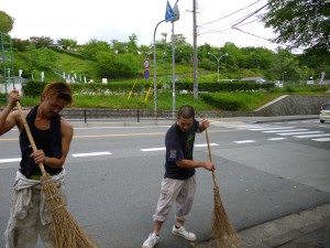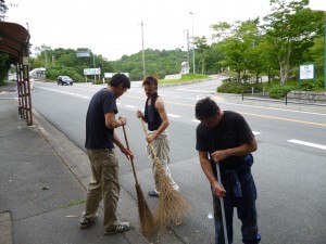 今日は 仕事が早く終わったので会社の前を掃除しました。