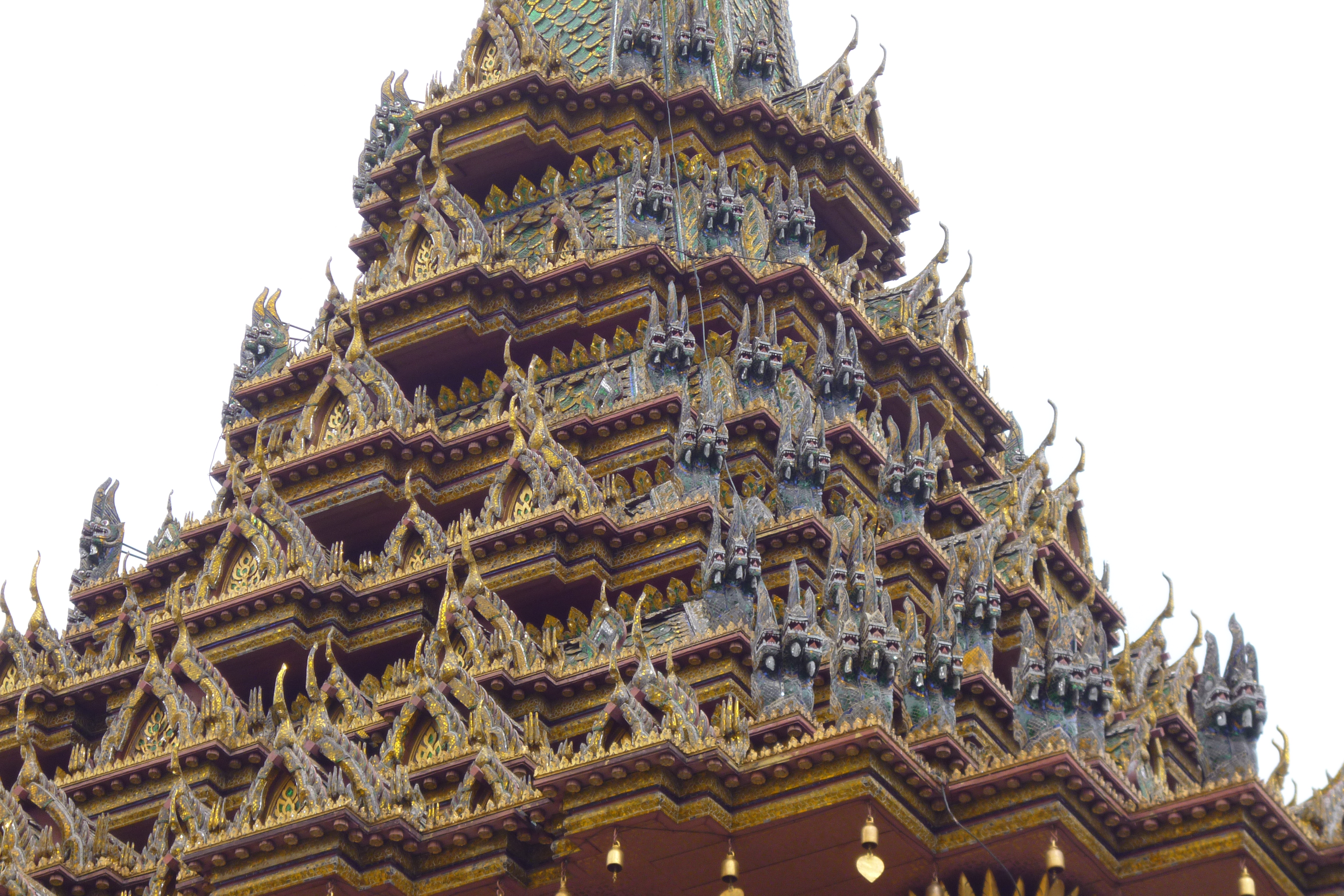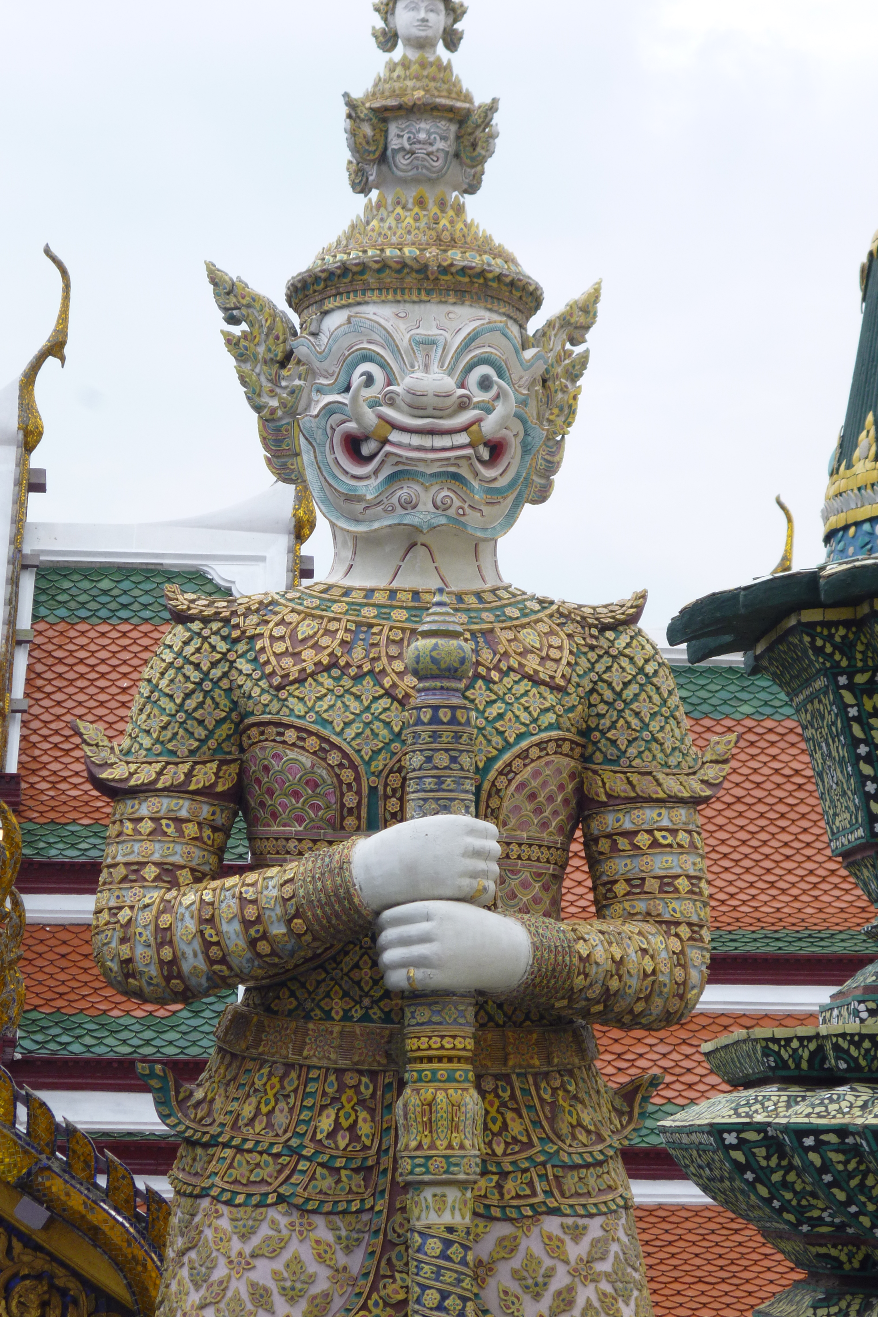 タイ その2 2012.01.25 王宮 ワット・ウラケオ とにかく 金箔と色ガラスのモザイクで装飾されていて絢爛豪華な建造物ばかりでした お釈迦様の遺骨である仏舎利が納められているそうです 魔除の守護神 『 ヤック 』 不思議と カワイイ !! 『 トリビタカ(金の法典) 』 と呼ばれる経典が納められている書庫らしい 『 エメラルド仏 』 正式名称は 『 ラタナーコーシイン 』 美しい 季節ごとに衣装が取り替えられるそうで、きっとその作業は大変と思われる この国の方達は 王様 仏様 に対してどう言い表していいのかわからない程 篤いし 清いし 美しい そう 感じた 一覧に戻る