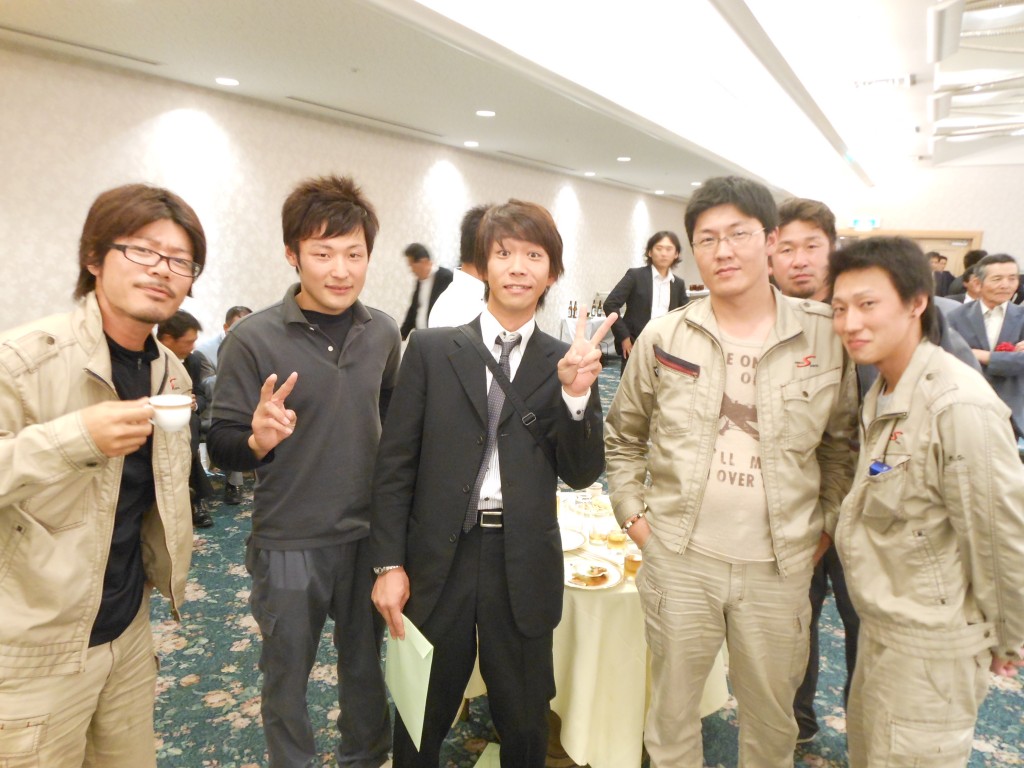 作業着姿は当社の社員で中央のスーツ姿はTPネットの西端くんとその隣が笠井産業の