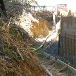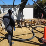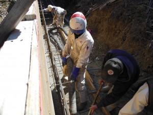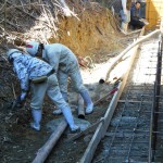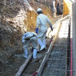 続いて昼からは、配管40メートルの擁壁のベースの打設風景です。