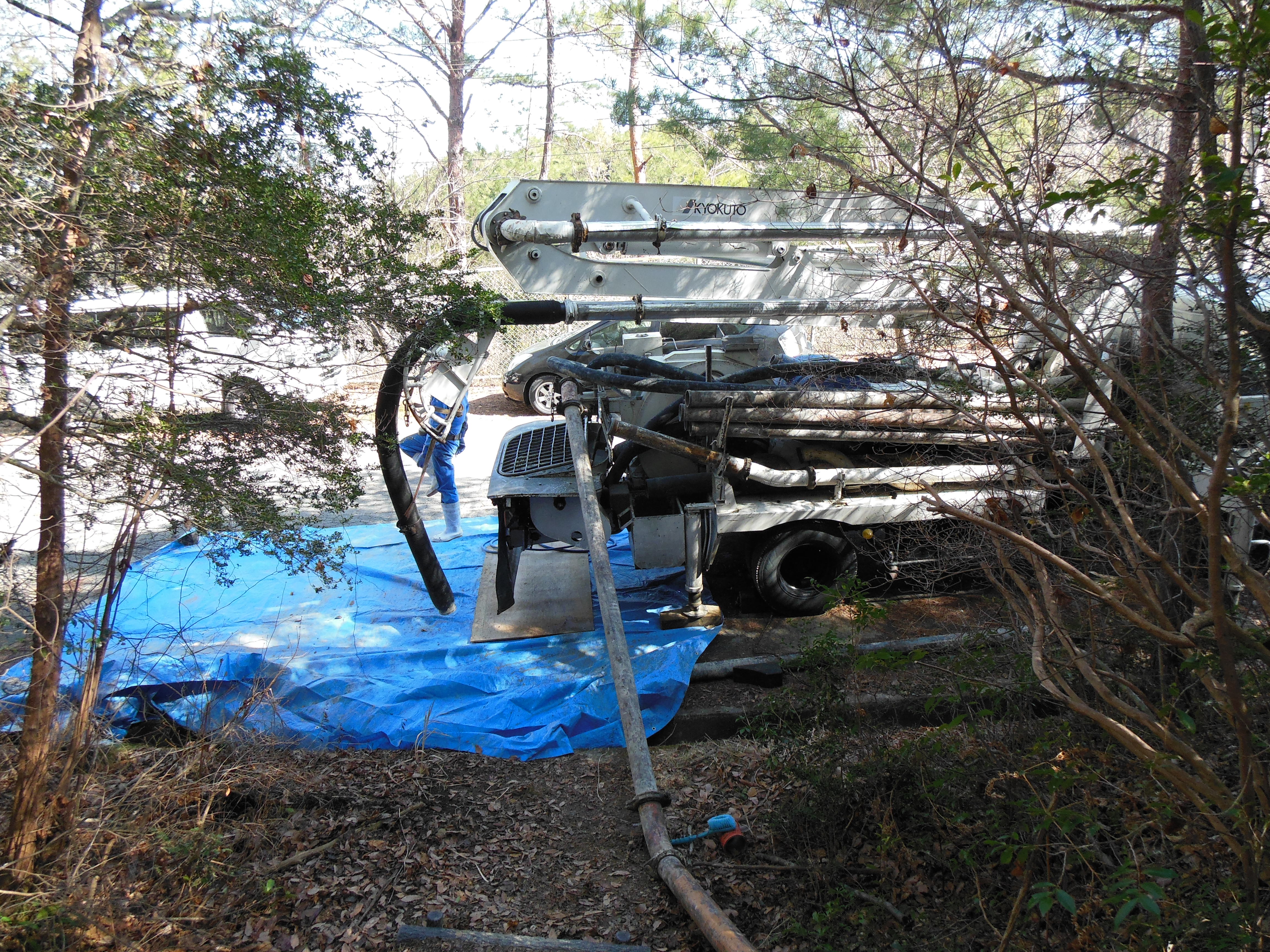 2人で素早く閉塞を解除して作業に戻りましたが次回からは業者さんにモルタルを頼んで