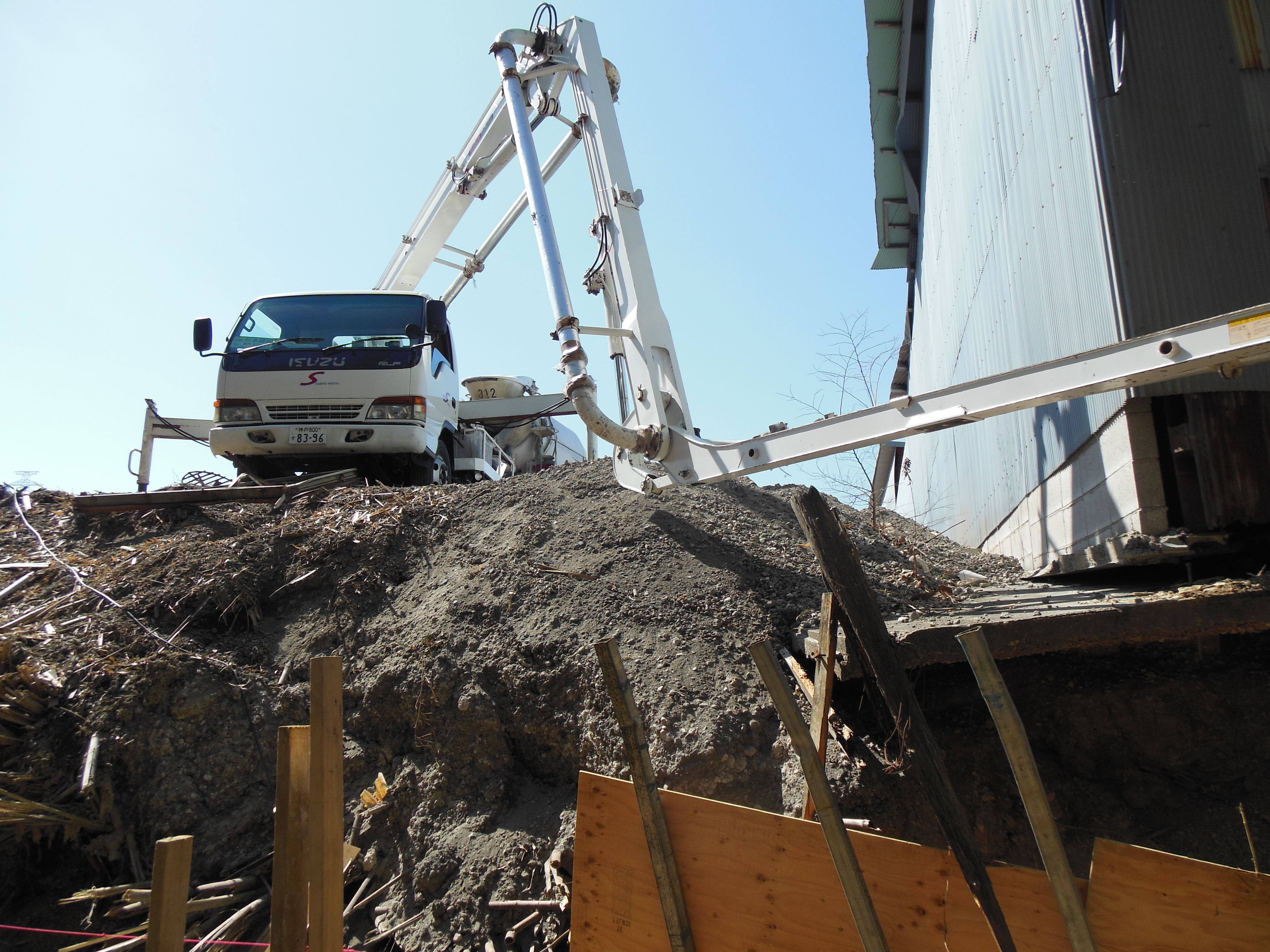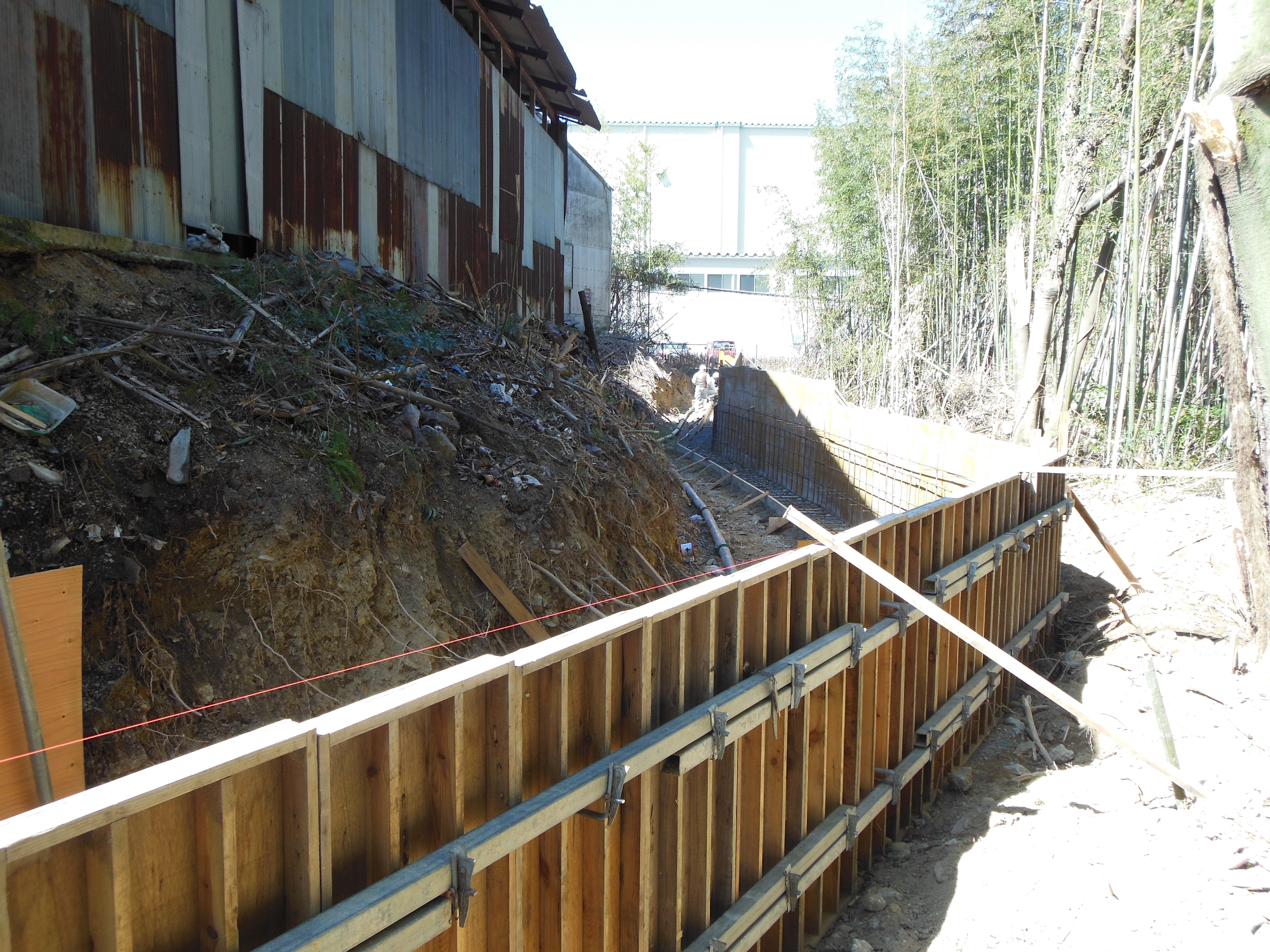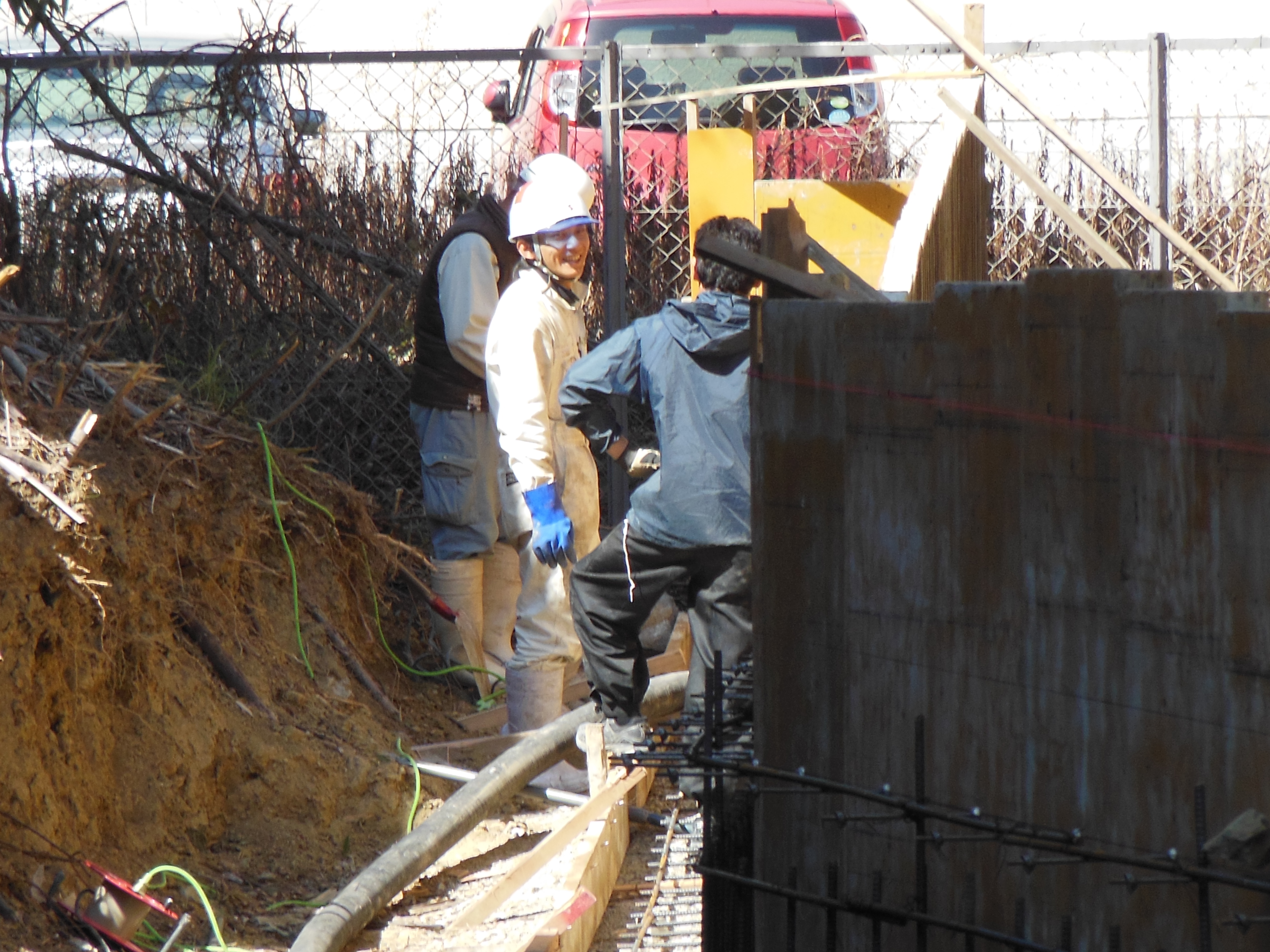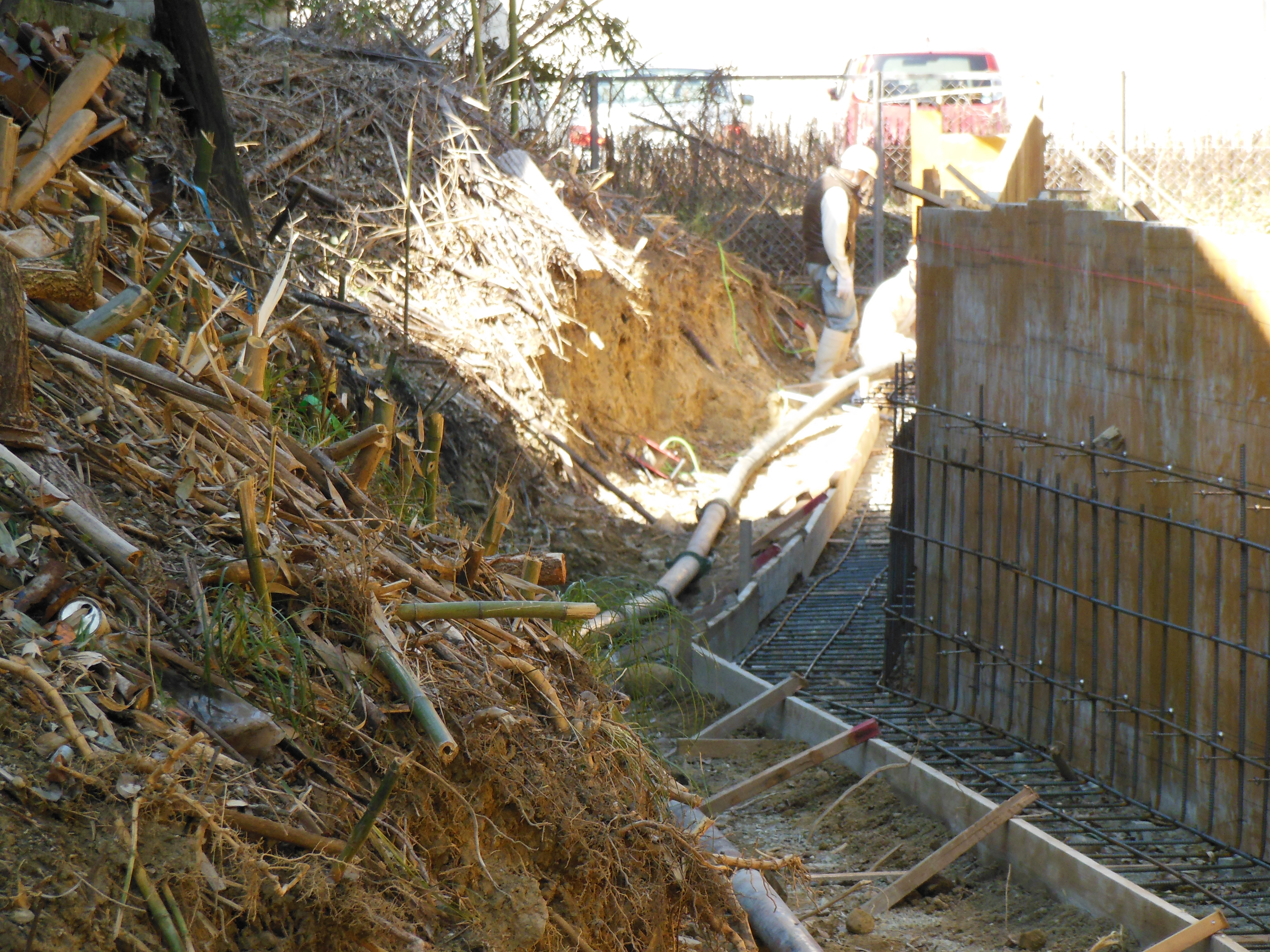 続いて昼からは、配管40メートルの擁壁のベースの打設風景です。