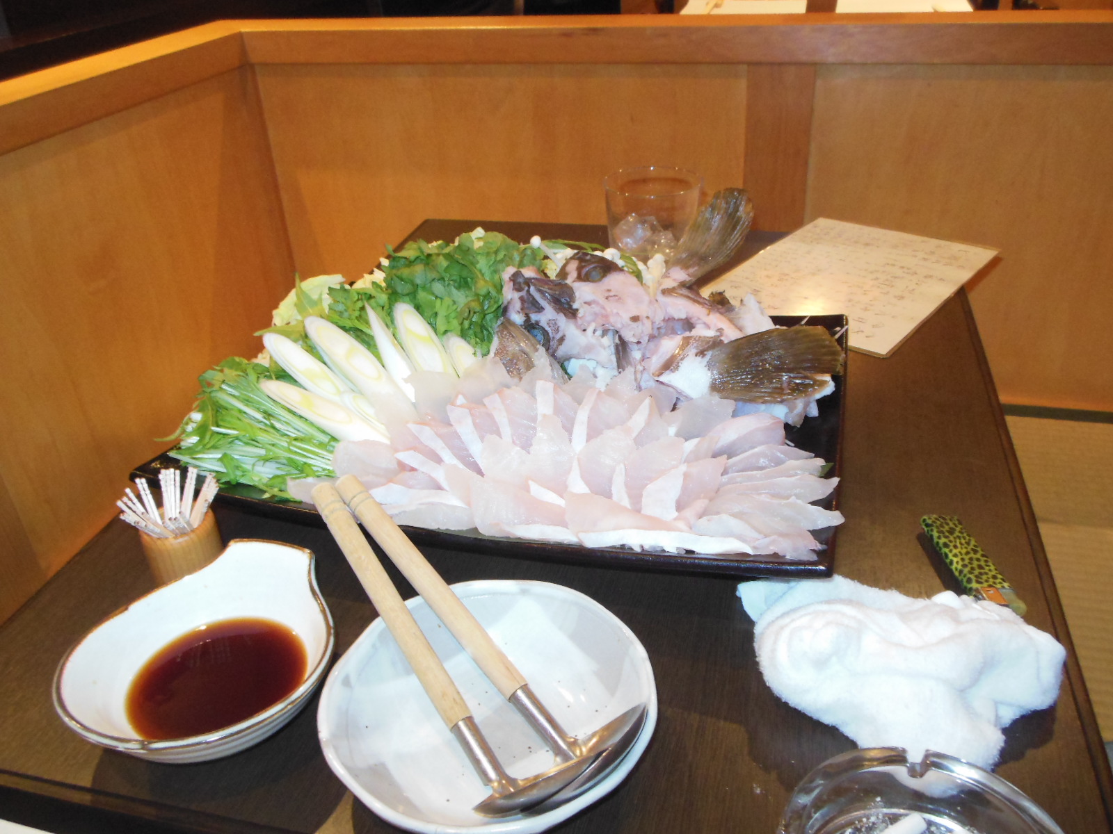 2014.2.13(木)in西宮 2014.02.23 こんにちは、杉本です。 少し前ですが先週に西宮市下大市東町33-22にある「天然魚旬料理 きときと」さんに 取引先の山本産業社長とわが社の主任三谷と事務の彦坂とで日頃お世話になっている お礼に4人で食事の場を設けさせてもらいました! 以前(たぶん7年くらい前?)に山本社長さんにこの店でクエ鍋を用意してもらったのを 忘れられなくてここのお店を今回も予約してもらいました! 今回も美味しく楽しくさせて いただきました!! もしこのお店に行かれるなら電話で予約がお勧めです! 西宮市下大市東町33-22「天然魚旬 きときと」(0798-53-7585)まで!