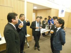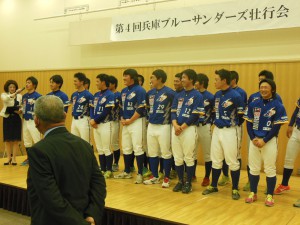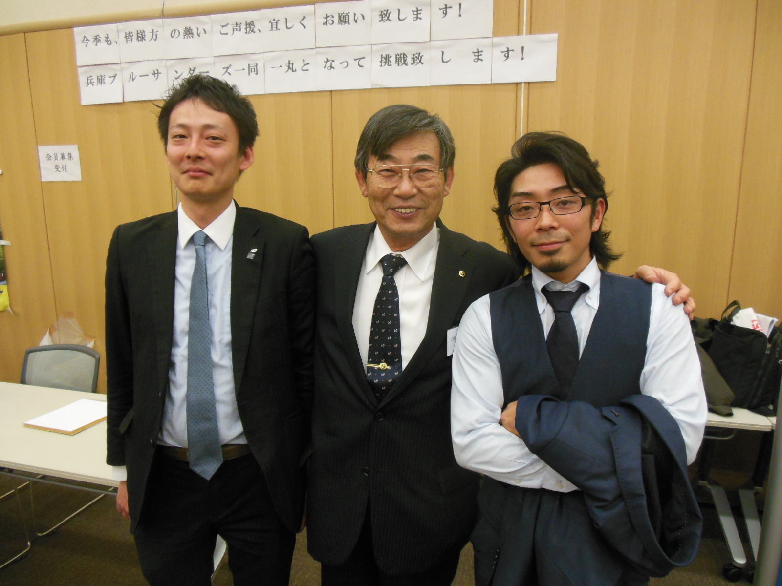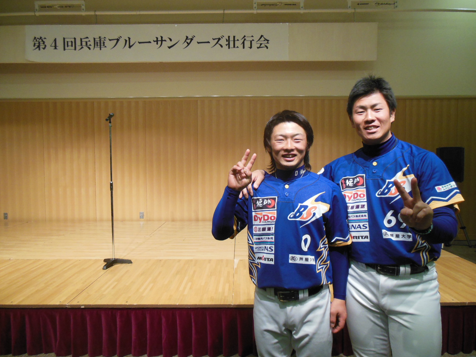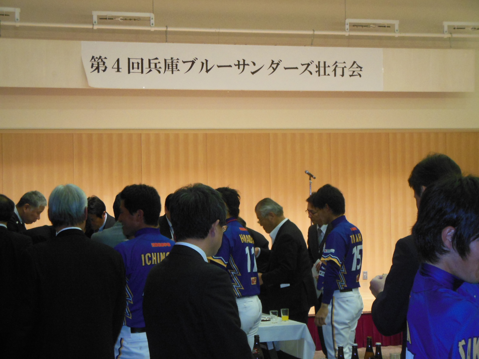 2014.3.14 兵庫ブルーサンダーズ壮行会 2014.03.15 こんにちは、杉本です! 昨日は、三田駅前のキッピーモールで兵庫ブルーサンダーズ壮行会が行われました!! はじめての参加でしたが大勢(100名ほど)の方がいてすごく盛大でビックリしました・・・ が、けっこう知り合いの人も居たので乾杯からスタートダッシュでビールをグイグイ↑↑↑ いただきました(笑) 三田駅前のラウンジ「灯」(あかり)のまりママさんと満面の笑みで! 小さい方が自社に応援で来てくれてる多田羅選手です。 日高選手もよくアルバイトに来てくれてます! 三田で若手のリーダー的な存在の人たちが集まってます。 三田市の竹内市長(真ん中)も参加されてました。 兵庫ブルーサンダーズの今後の活躍に注目してください!!