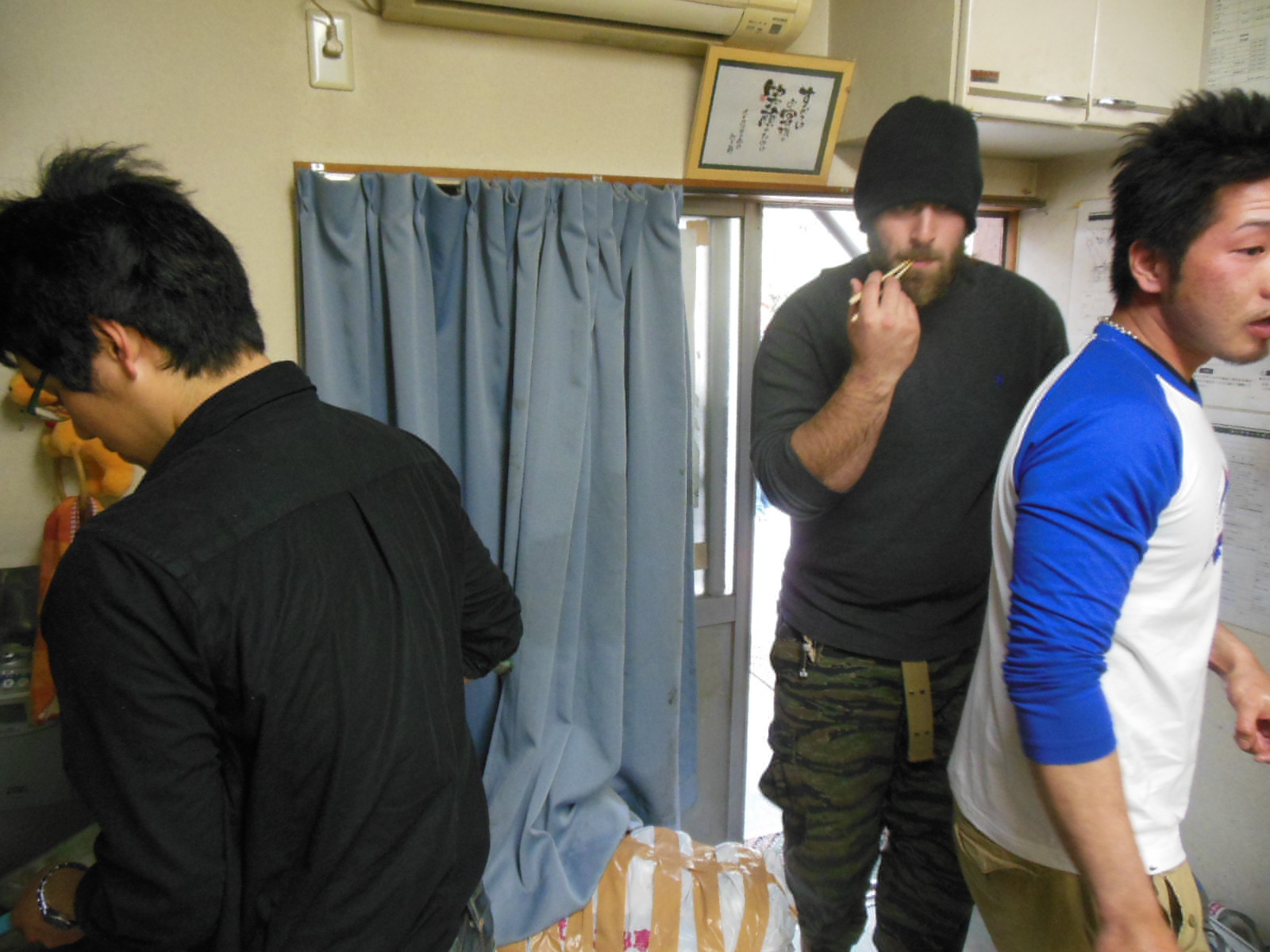 左の犬がエリックが実家から連れてきて、真ん中の犬は福田くんが飼ってます。