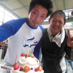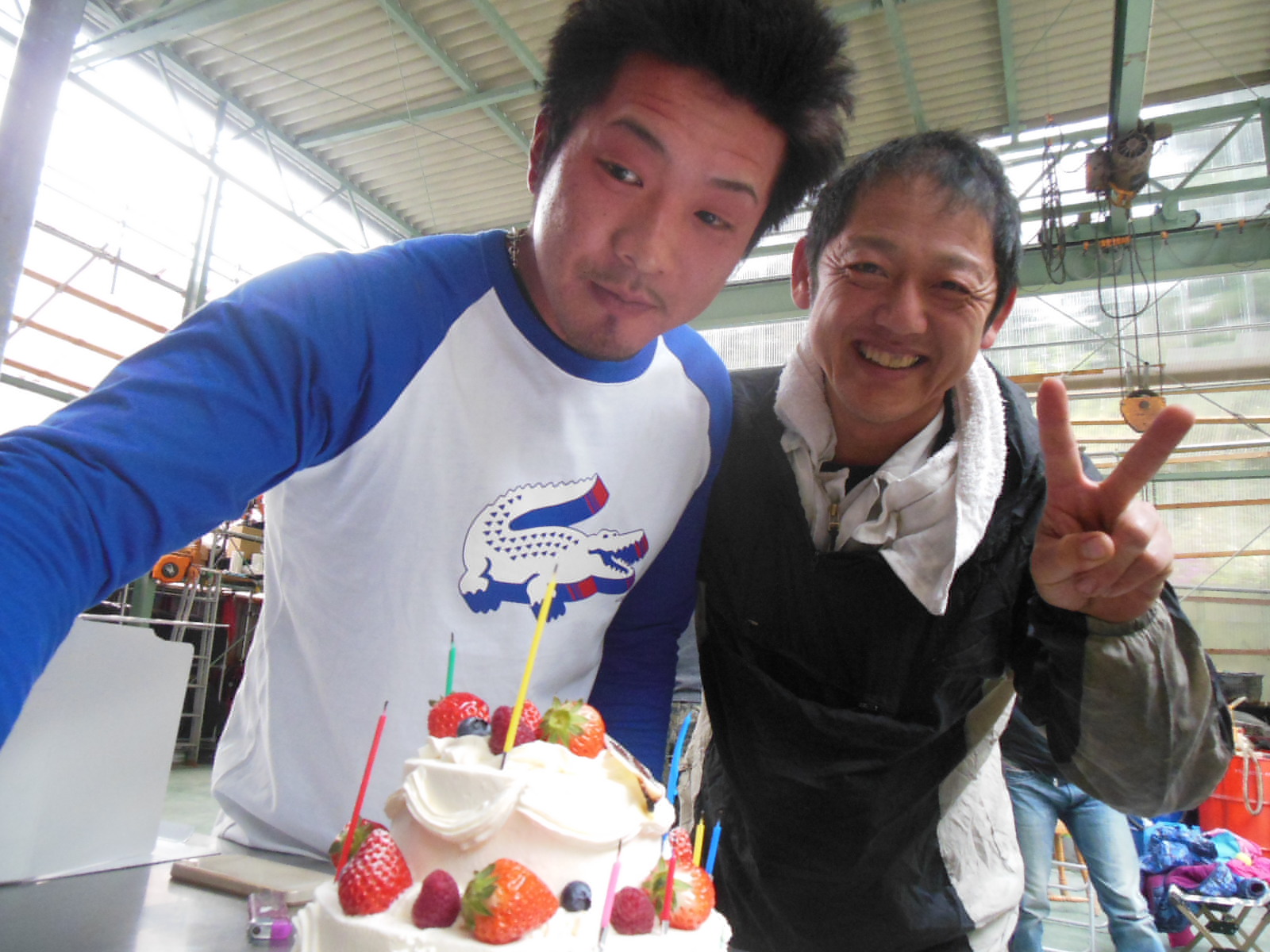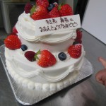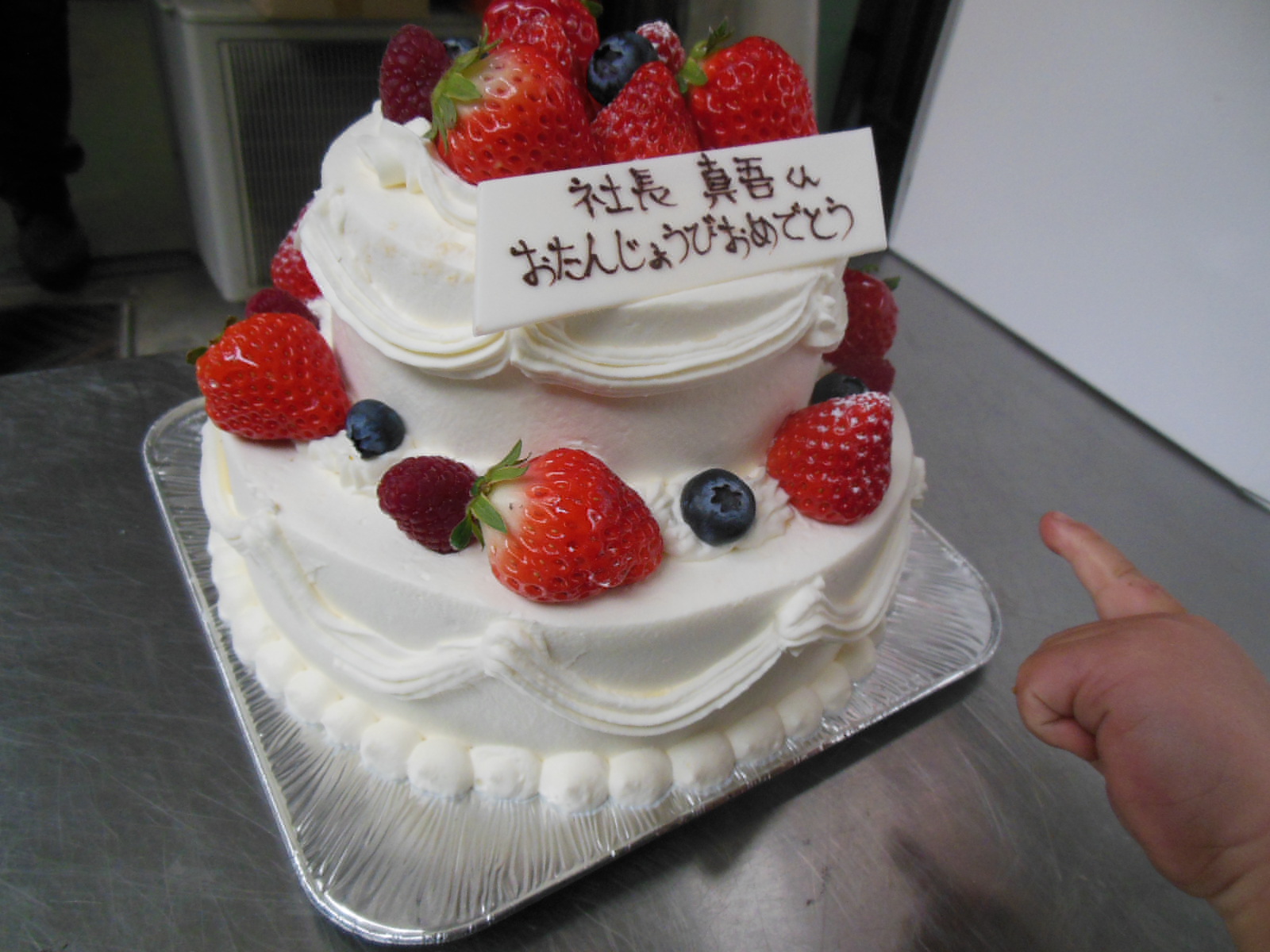 バースデーケーキを事務の彦坂(通称なおちゃん)からのプレゼント(2段!!大きい!!)