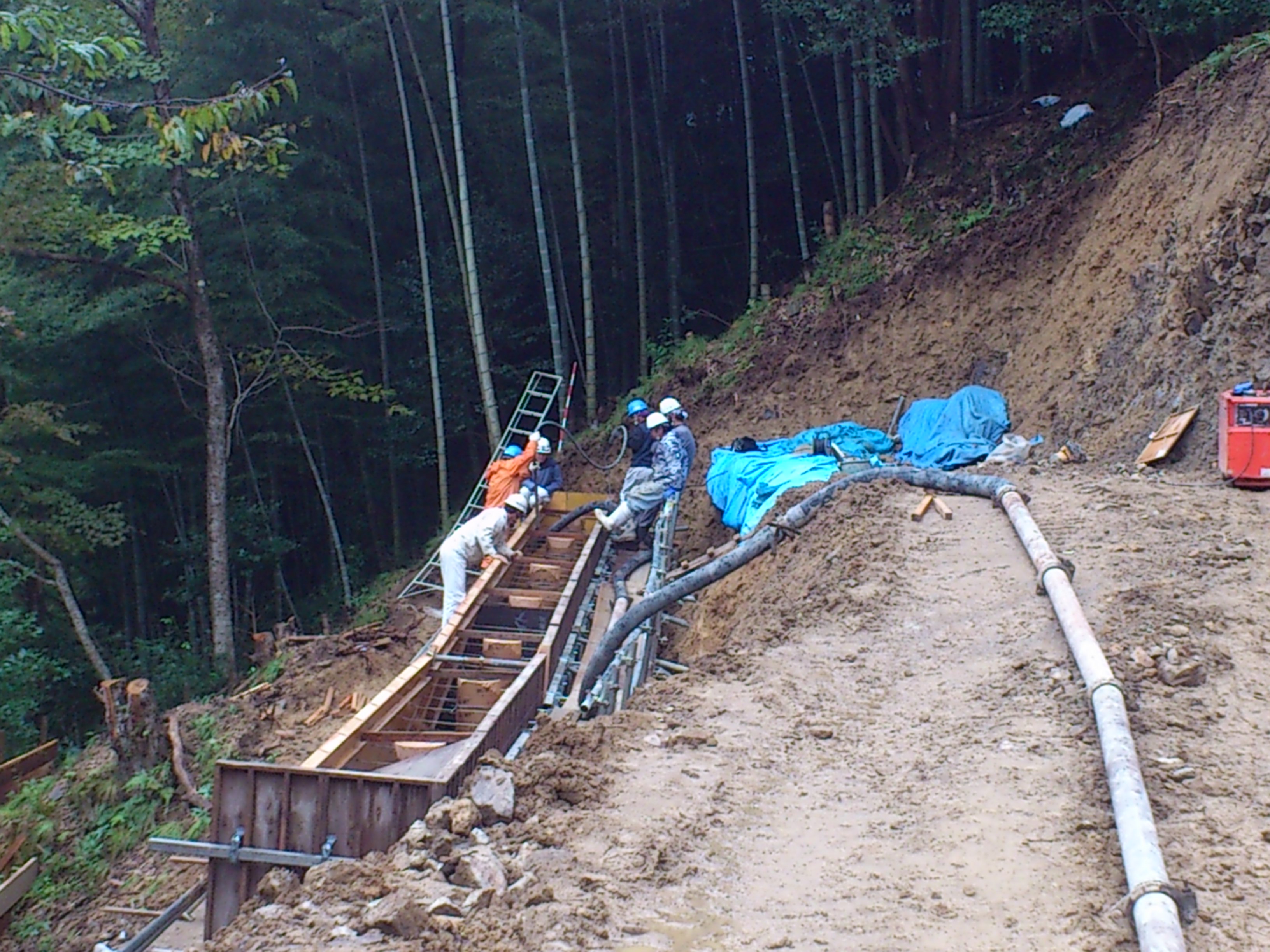 お疲れ様です 米谷です 2014.04.19 少し前の現場の写真です、全長約100m高低差10mぐらいの重力式擁壁の打設状況です。 エリックと石本さんが居てくれたからスムーズに作業出来ました。 一覧に戻る