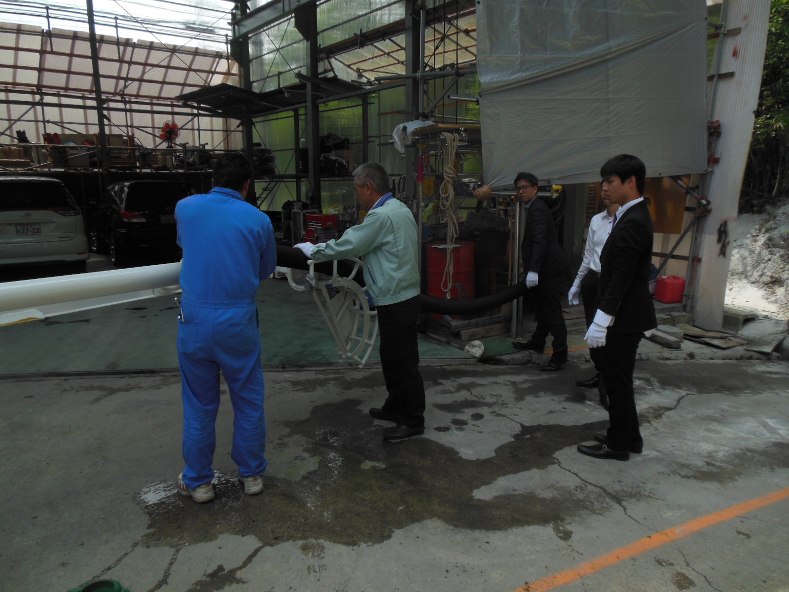 ガレージを出発して現場に向かいました!!