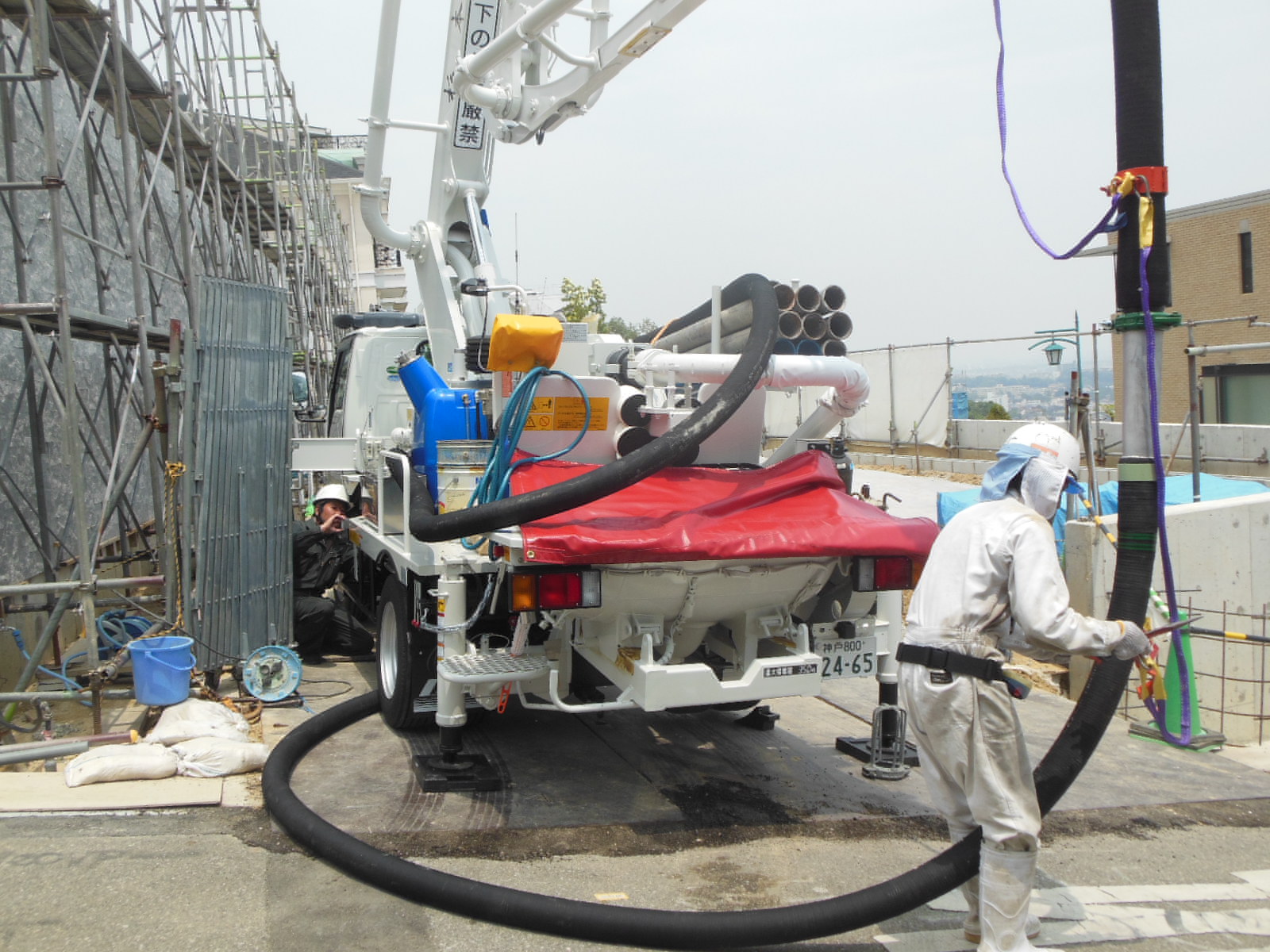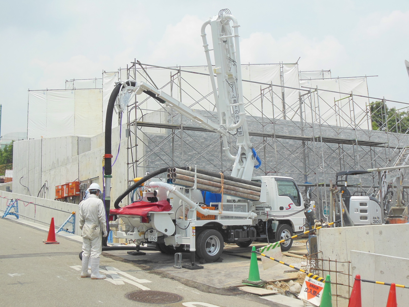 無事に生コンが先端まで出てきました!