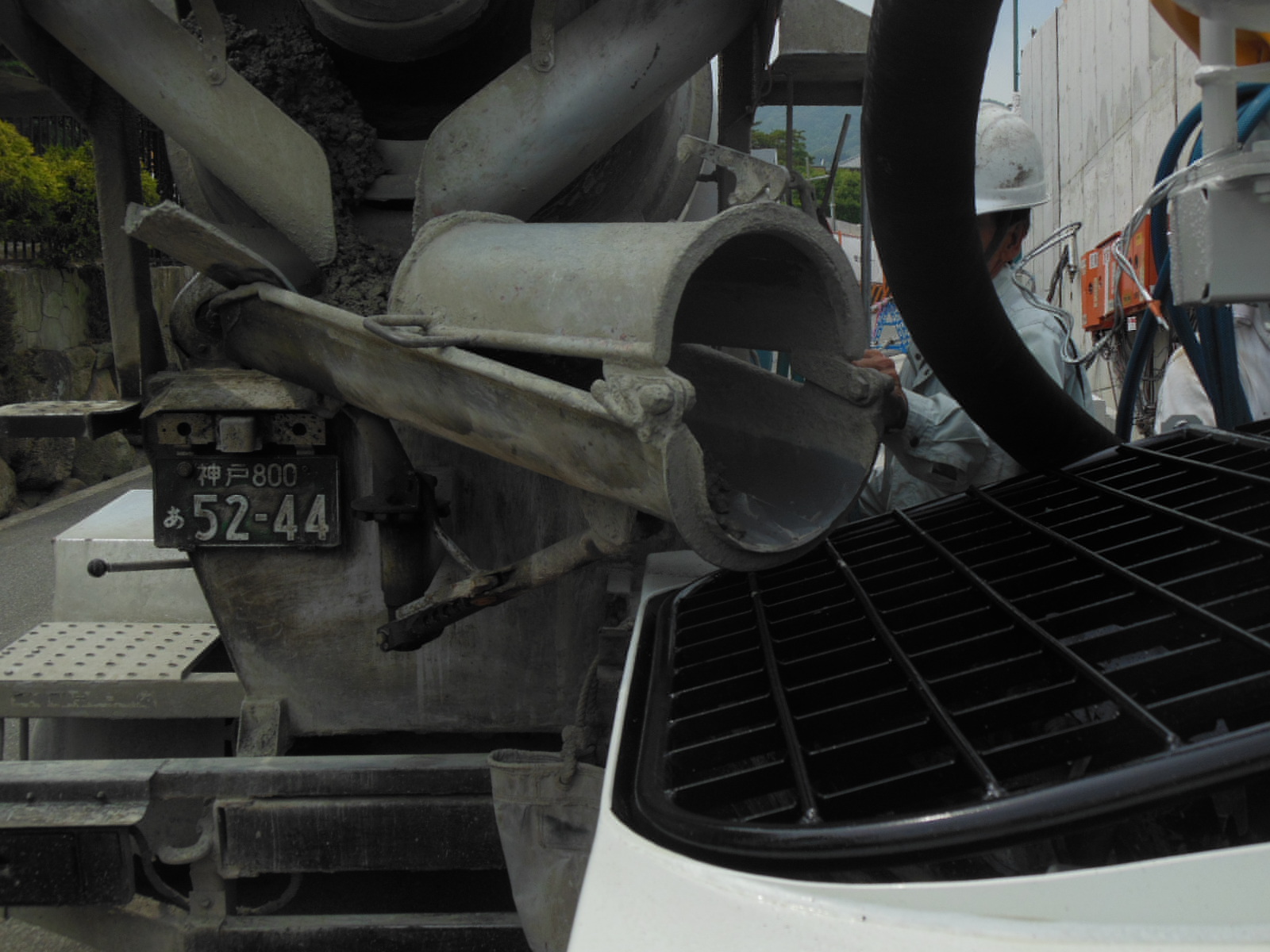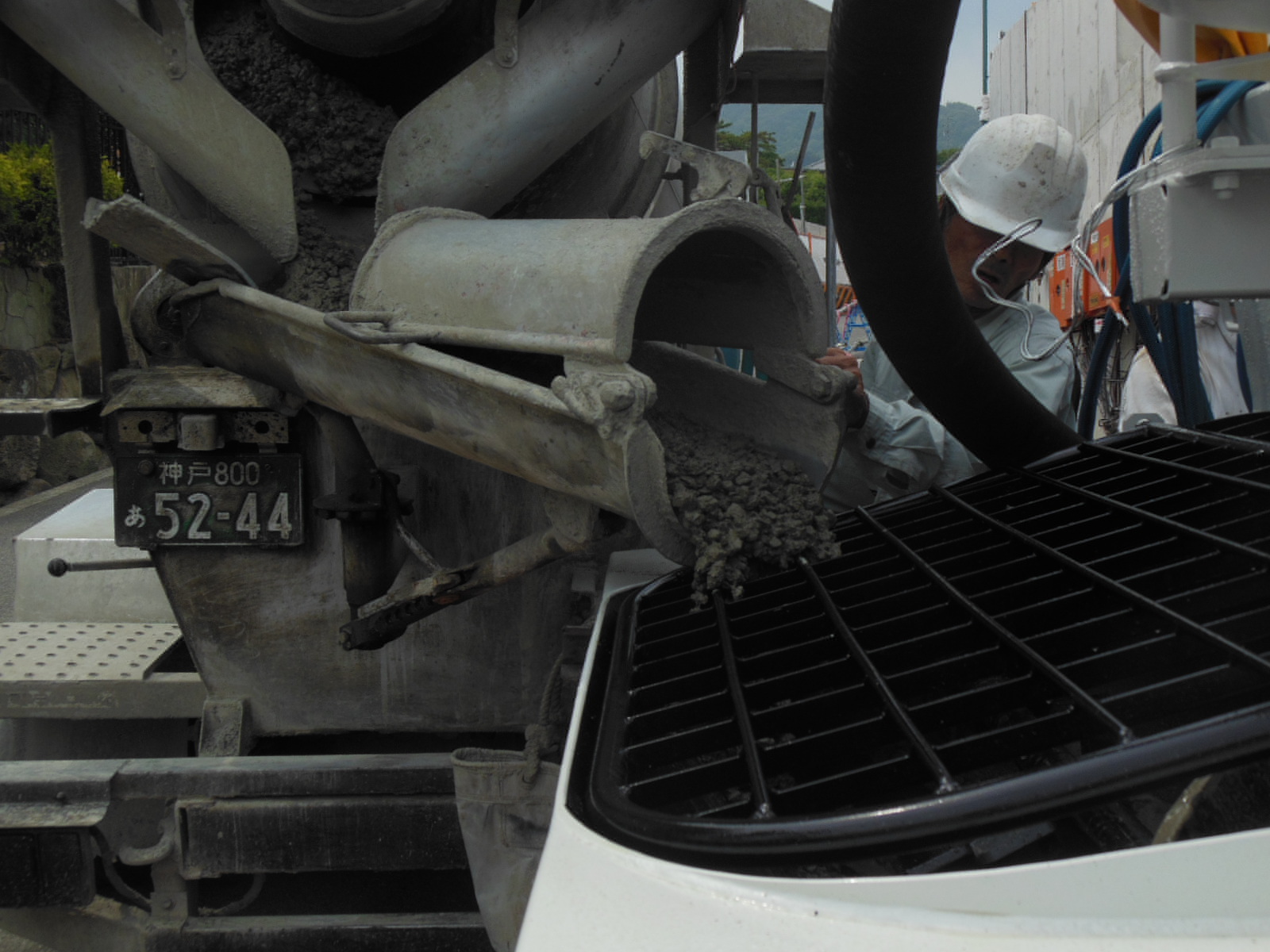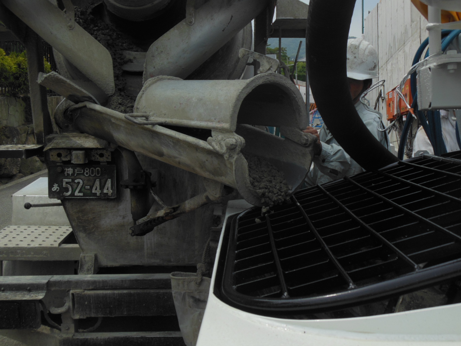 この瞬間がドキドキします・・生コン先まで詰まらず出るのかな・・・?って感じに