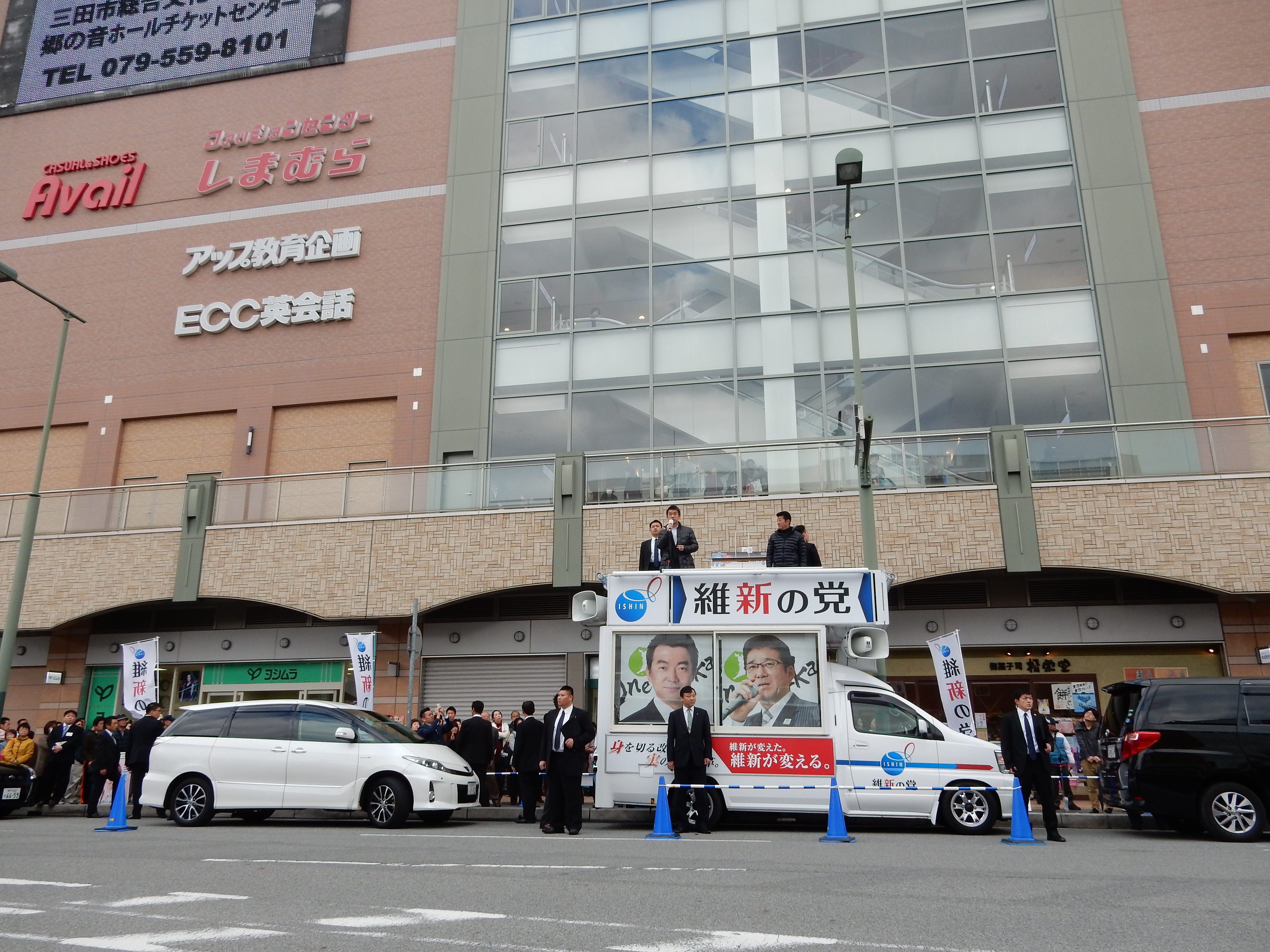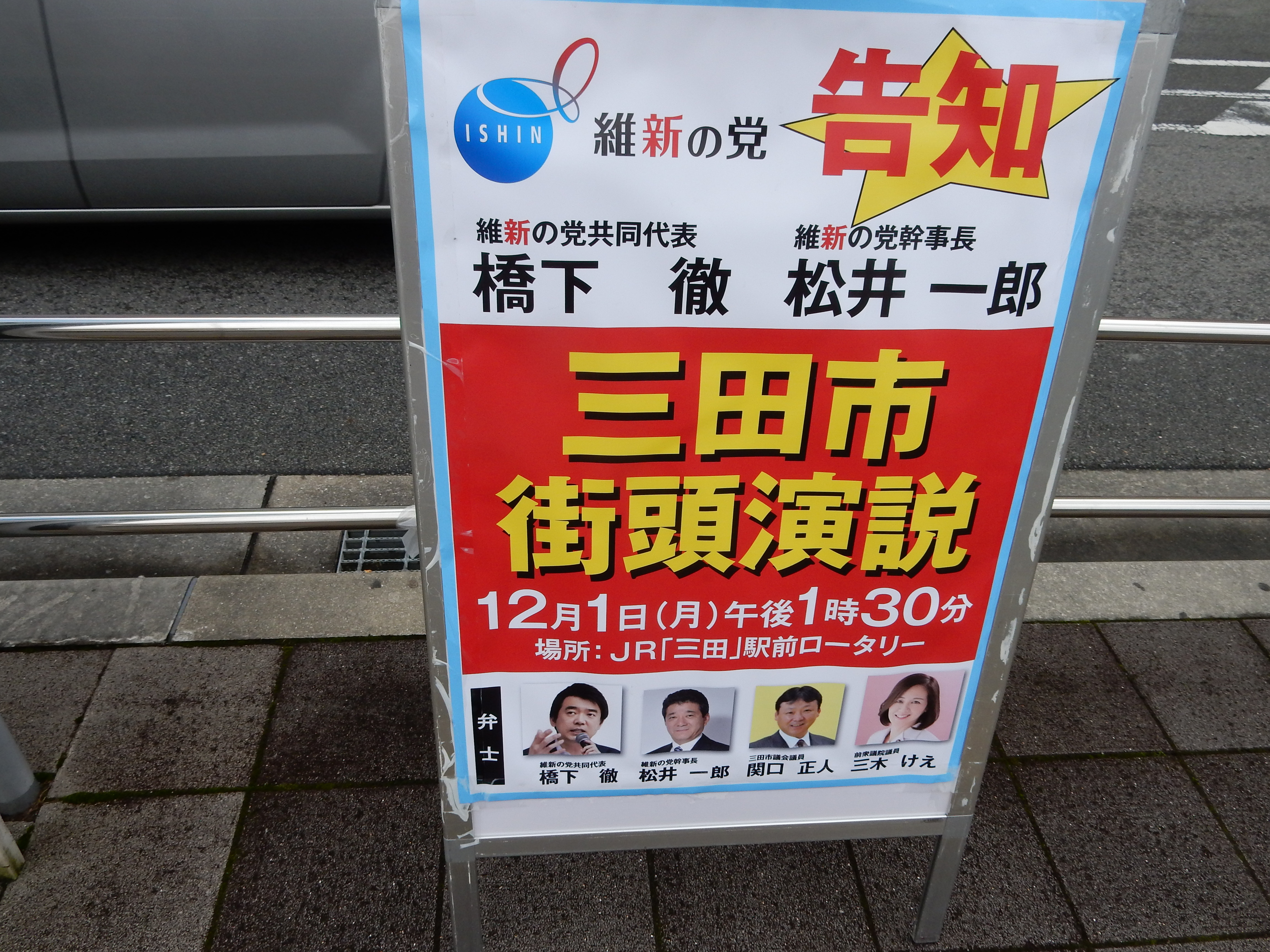 今日は、JR「三田」駅前ロータリーにて維新の党の街頭演説