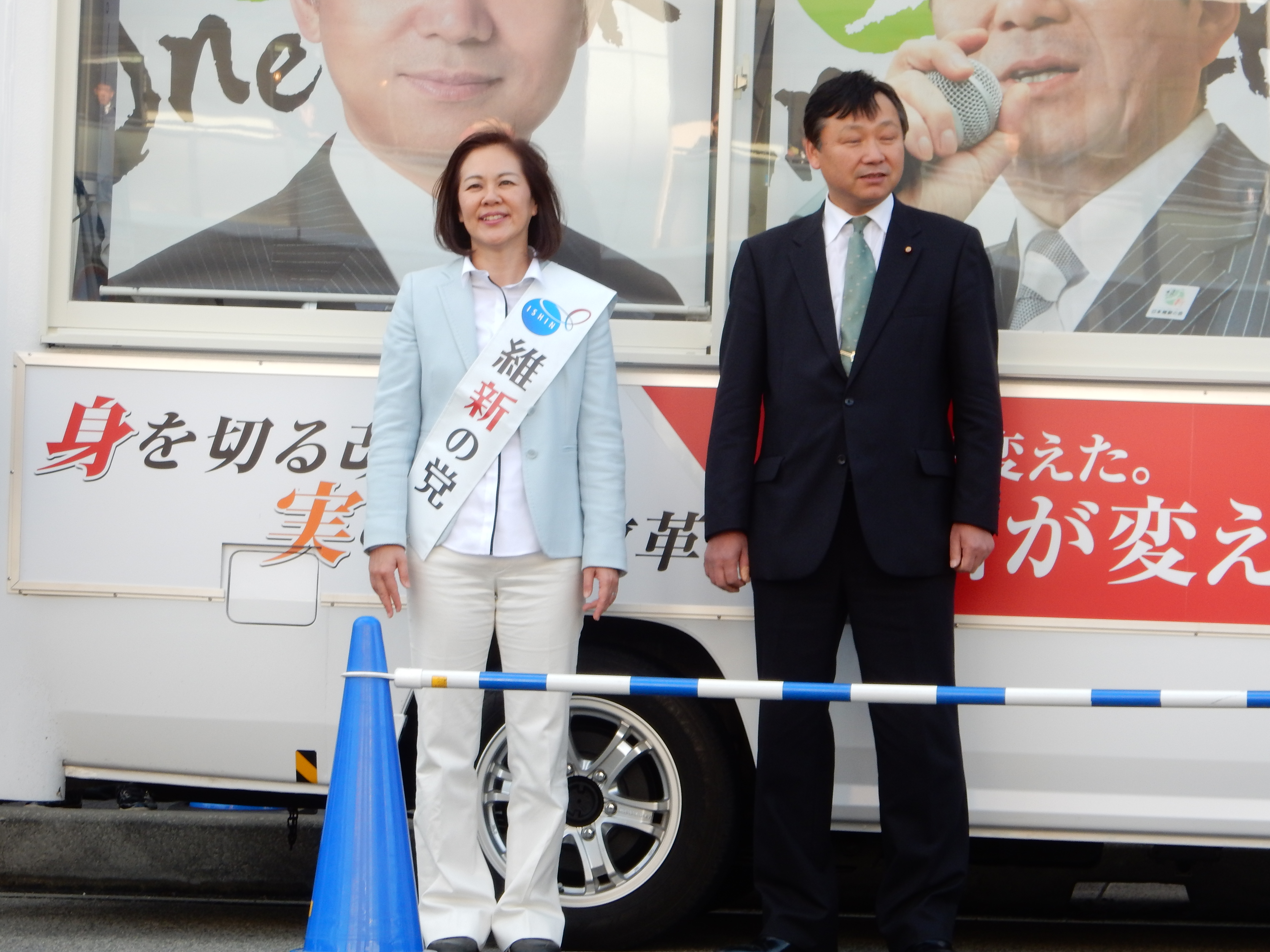 三木けえさんの応援に維新の党の代表 橋下 徹氏と幹事長 松井 一郎氏が