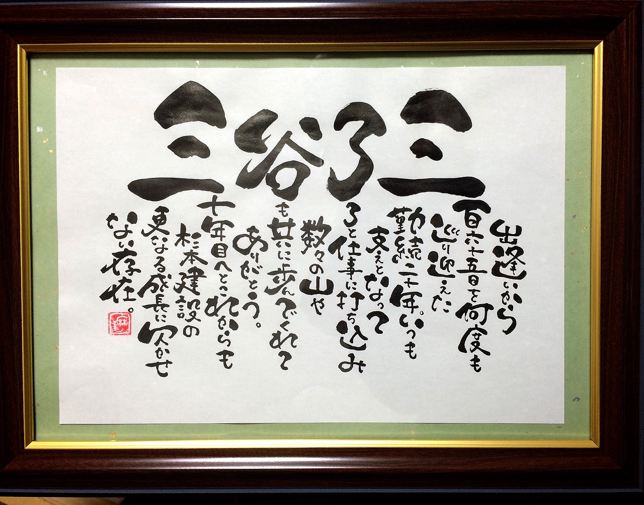 主任・三谷が今年で勤続20年を迎え記念品を贈呈するのに時間を作って