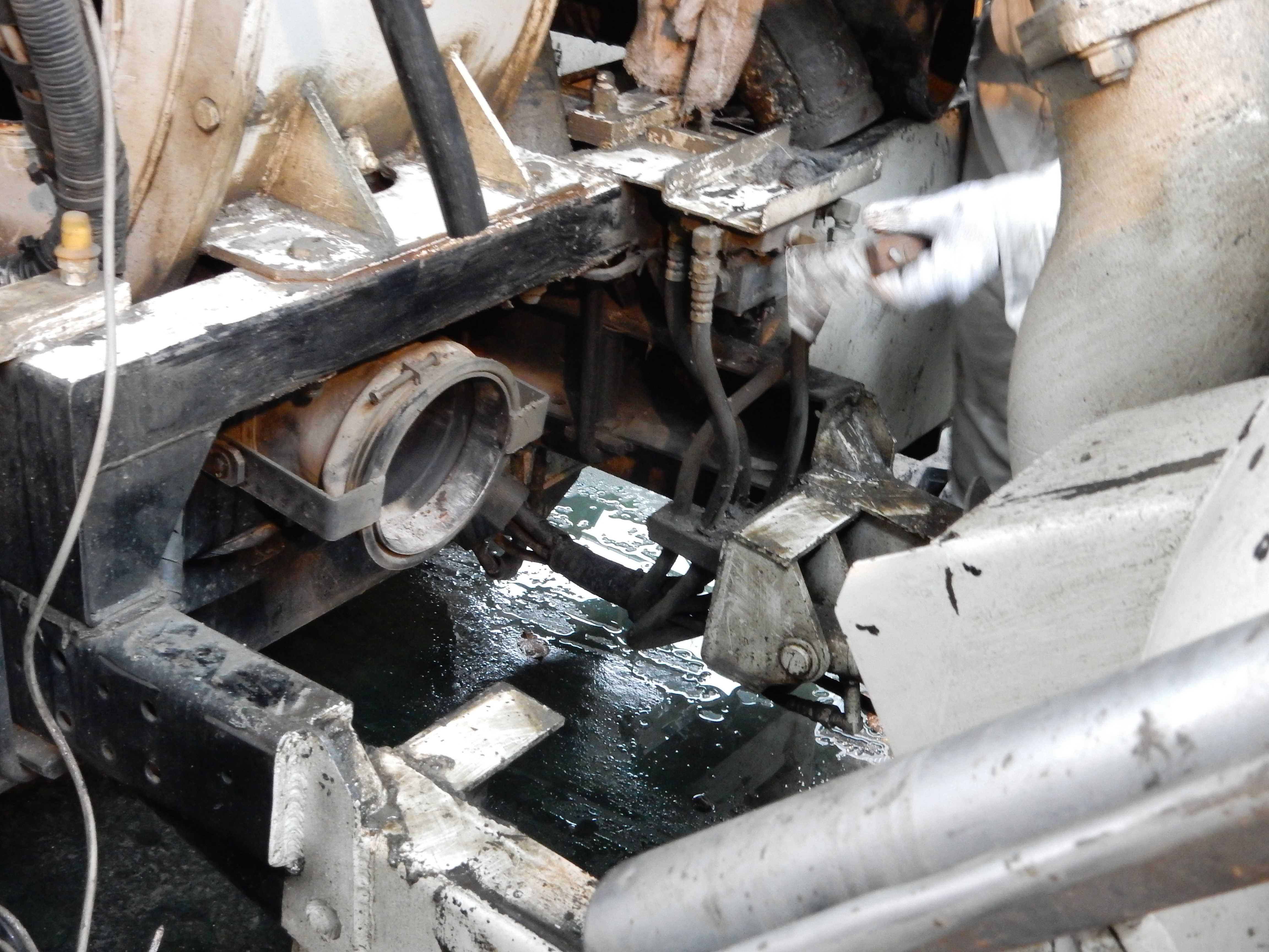 雨~♪の日の作業! 2014.12.11 こんにちは、杉本です。 今日は、雨で現場が少ないのでガレージにて整備をしてます。 このポンプは、PH50-17でポンチューの反転して清掃中!! 今年入った新人(翔吾)に主任(三谷)が指導してます!! 今年の6月に入った PH45A-15です! ポンチュー交換してますがさすがに新しい車なので チューブの傷み方がかなり軽減されてるようです!! 現場でのトラブルを無くす為に日々の点検・整備を頑張ってます!! 一覧に戻る