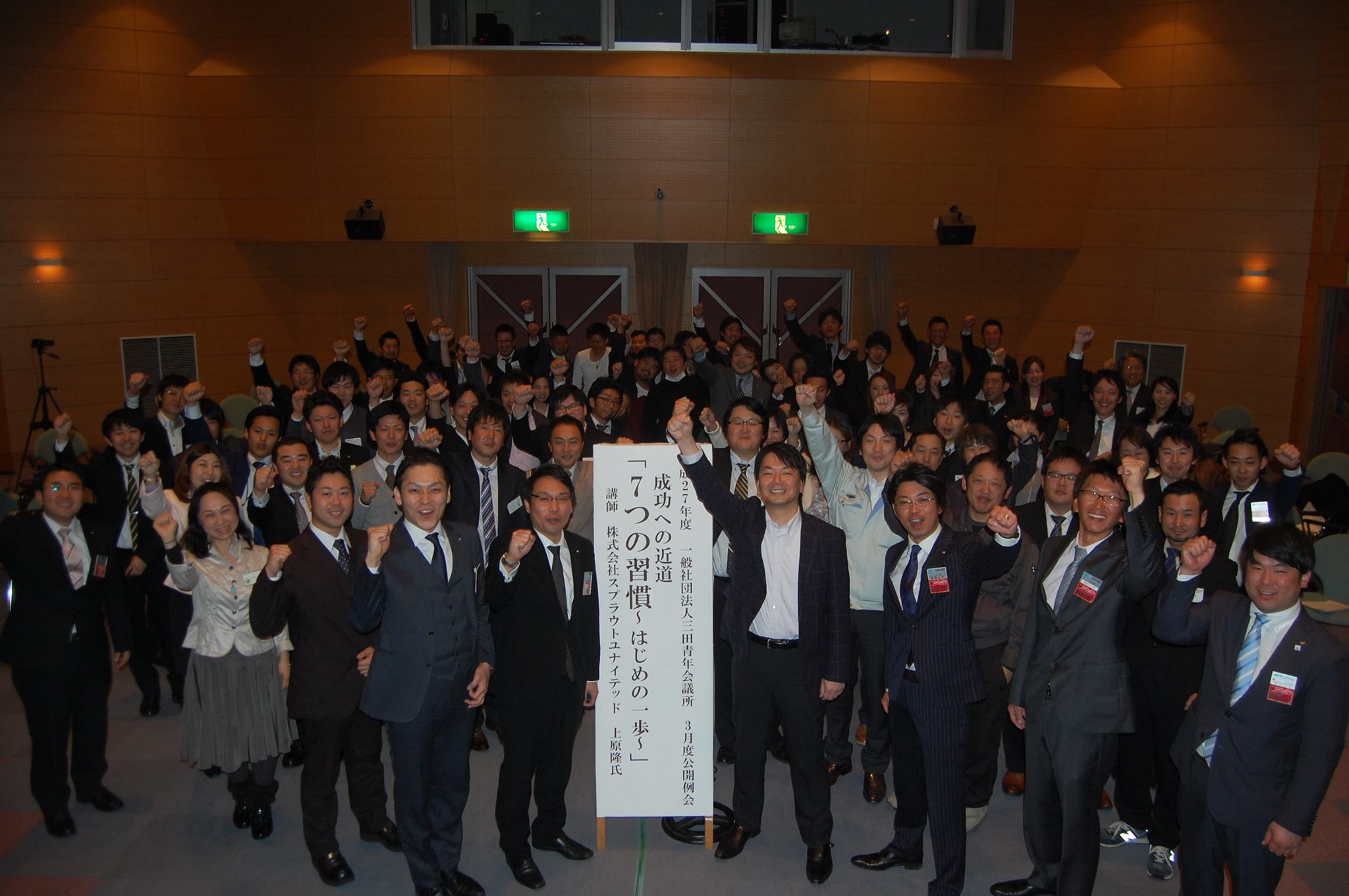 三田青年会議所 3月例会 2015.03.14 こんにちは、杉本です。 昨日は、三田市で 成功の近道「7つの習慣~はじめの一歩~」 株式会社スプラウトユナイテッド 上原 隆 氏の体感研修に参加しました! 2時間30分の研修でしたが「あっと」いう間に終わりました! 一度聴いただけでは、中々出来ないことですが少しでも7つの習慣を身につけれる ように意識していきたいと感じました!! 最後に全員での記念撮影!! 30代の若い世代が頑張ってる三田青年会議所を皆さんも注目し応援をお願いします!!