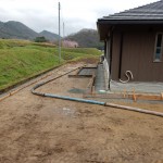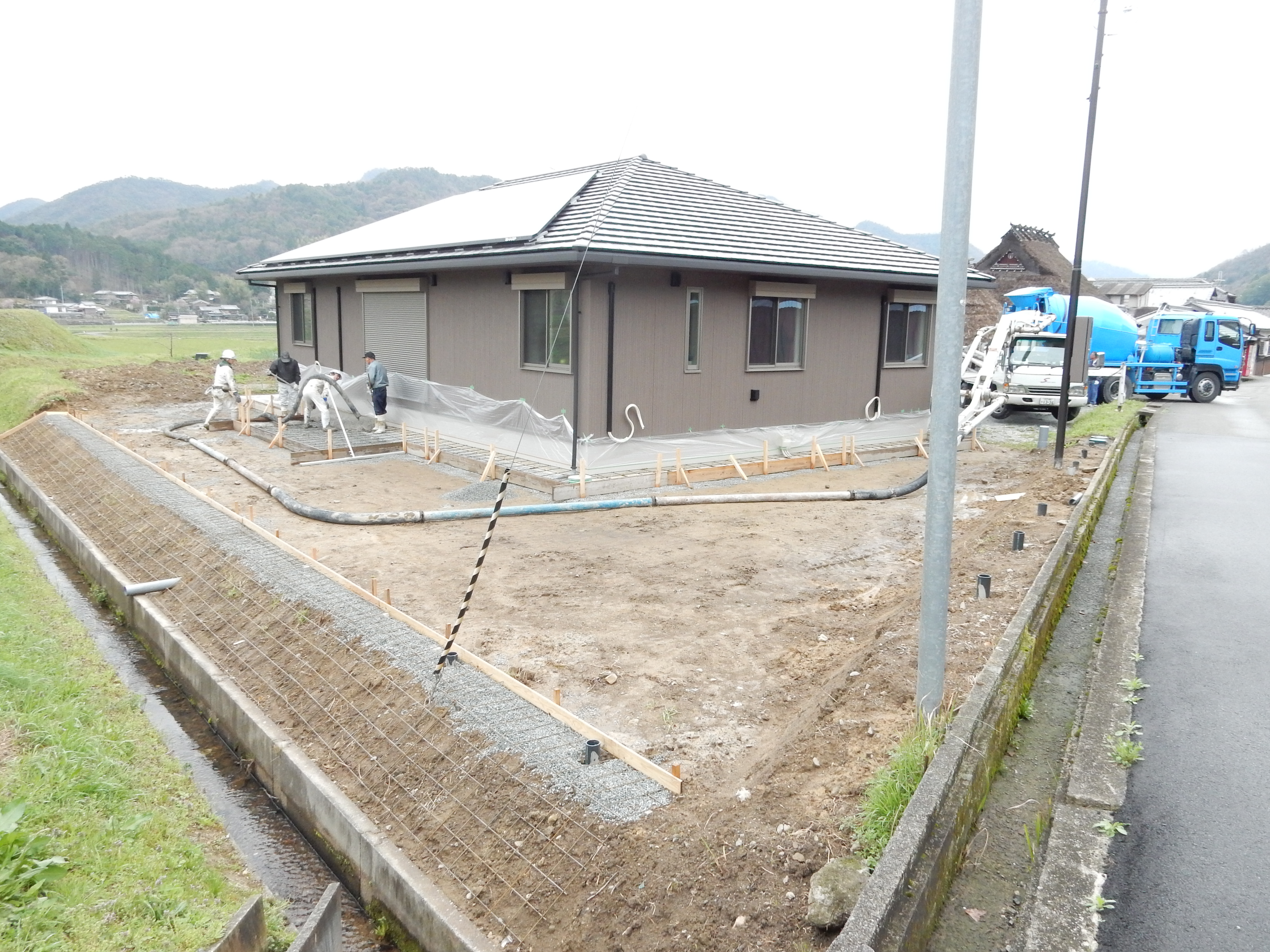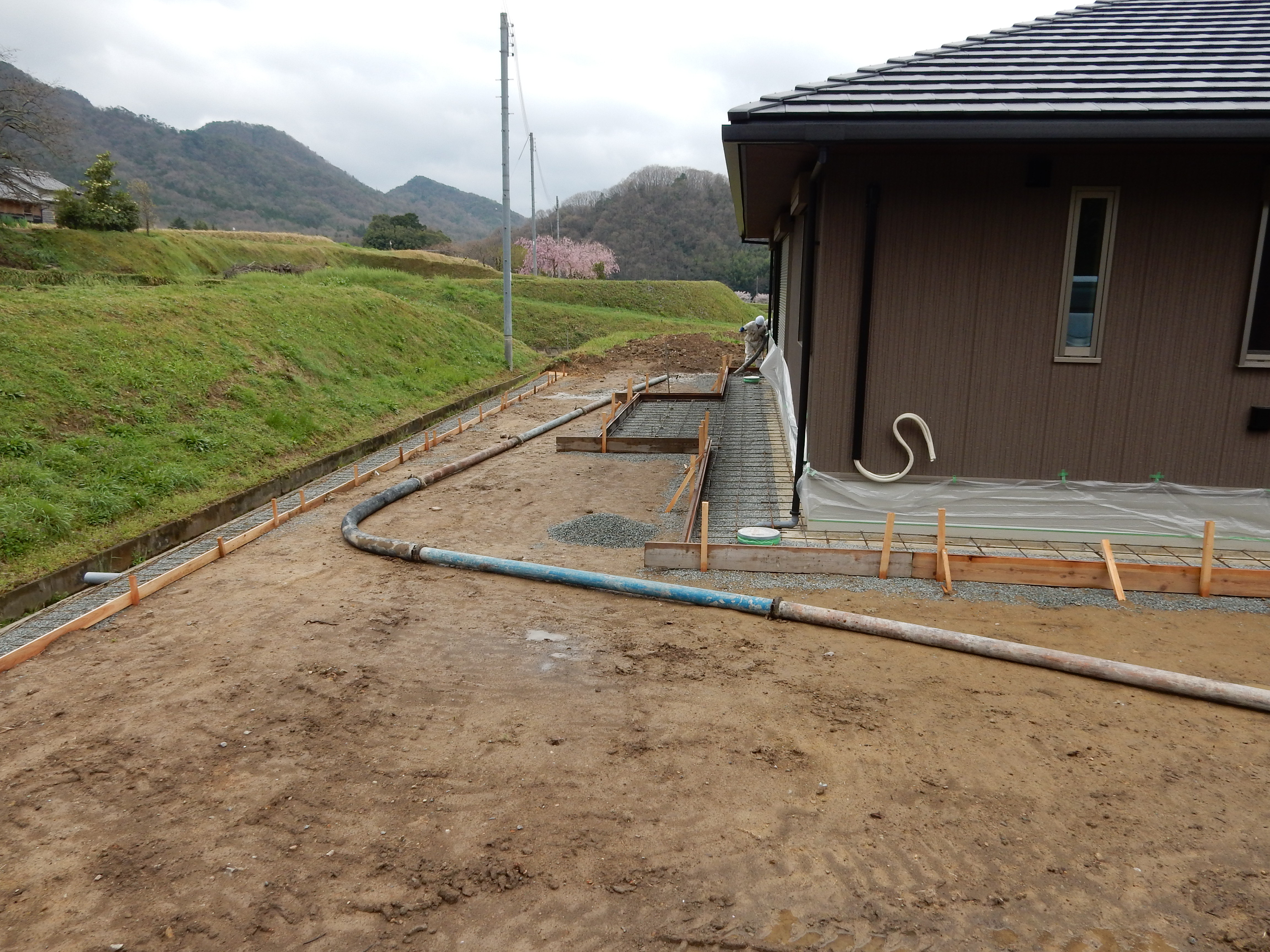 岡村酒造場!! 2015.04.08 こんにちは、杉本です。 今日は、事務所から北へ10分ほど行ったところにある「岡村酒造場」の お隣の現場視察をしてきました!! 岡村酒造さんの隣の平屋のお家の犬走りです! 到着して撮影しようとしたらちょうど段取り変えをしてましたが足元がやわらかくて 二人(森口・翔吾)とも作業服がドロドロで作業を頑張ってました! どうです?? この長閑な景色!! 三田にはこんな景色がいっぱいありますので興味ある方は 是非、三田にお越し下さい!! v(^^)v