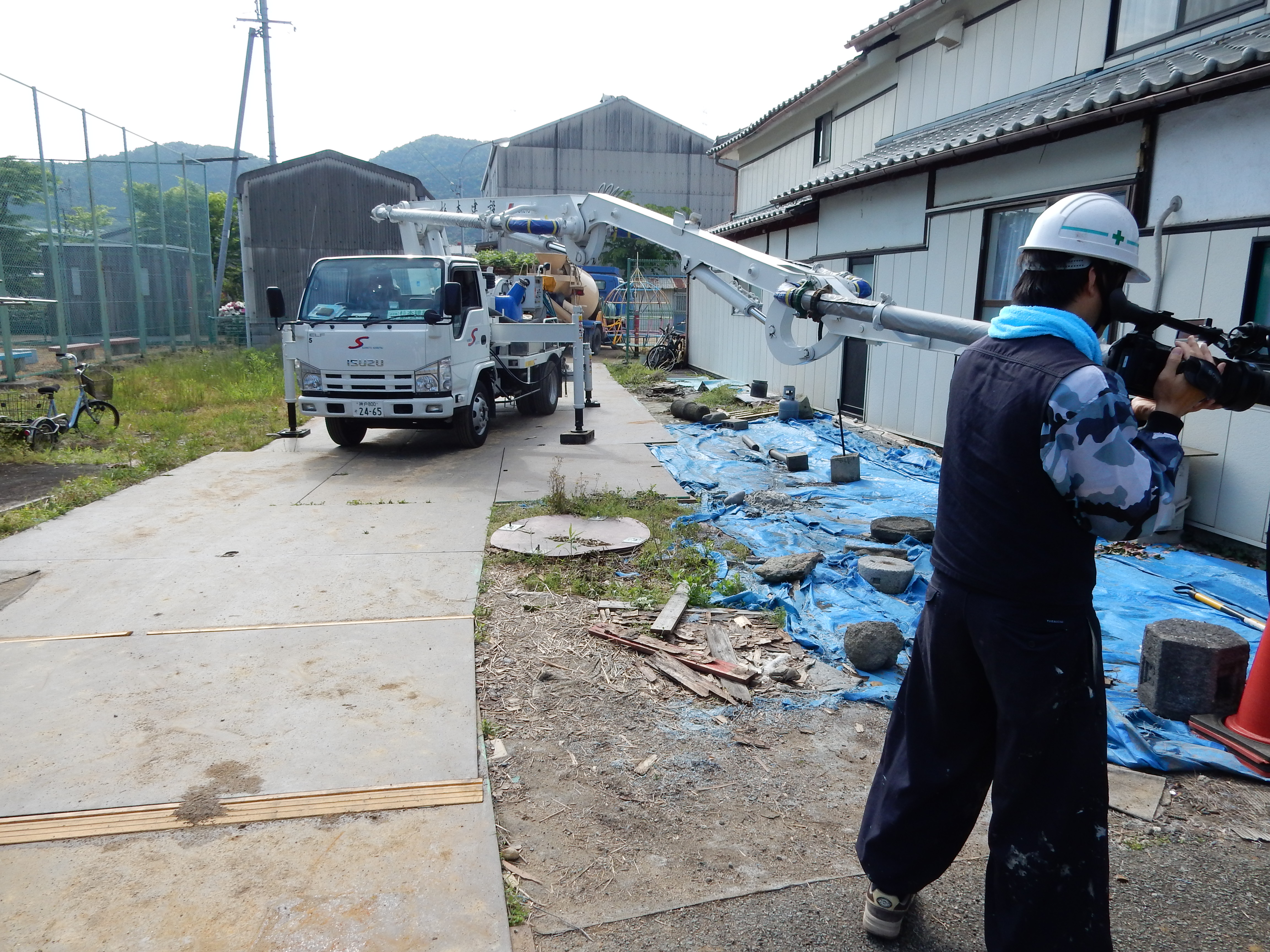 実は、今回の現場があのテレビ番組の対象物件で生コン打設中を撮影する