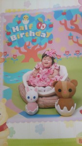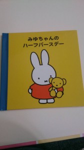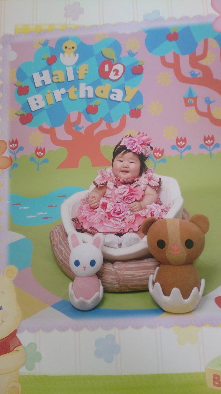 私事ですが・・・ 2015.05.26 こんにちは、杉本です! 去年の11月11日に生まれた娘が先日、スタジオアリスで ハーフバースデー(6ヶ月)という撮影をして出来上がりが 昨日、我が家に届きました!(^^)v この「みゆちゃんのハーフバースデー」がとてもよかったです!! 中を開けると絵本とみゆちゃんの写真とをうまく組み合わせて物語を 作ってました!! 3~4歳くらいになった時に絵本を読んであげれば赤ちゃんだった自分に出会えます!! この絵本を一緒に読める日が来るのが楽しみです~ v(^^)v