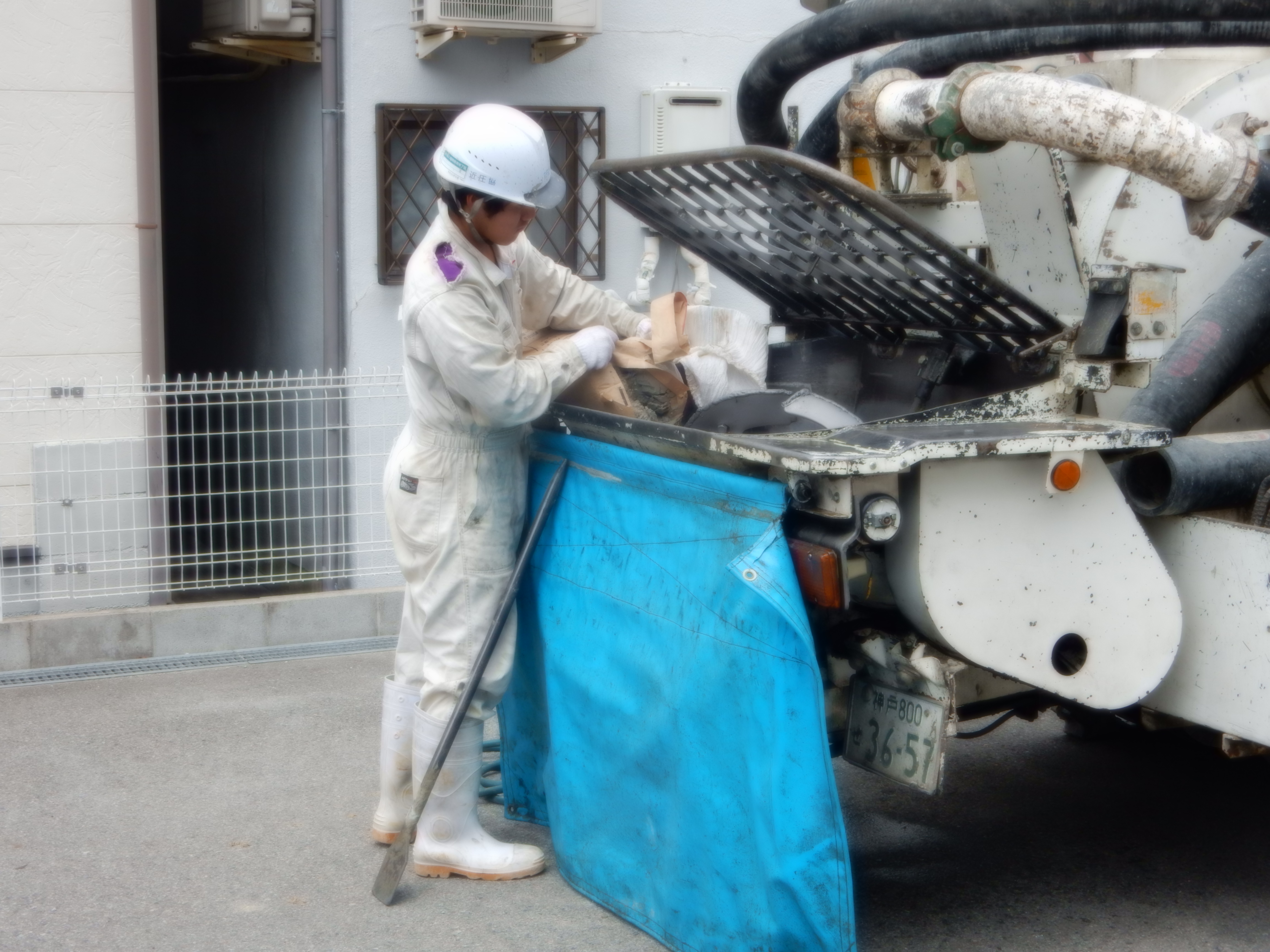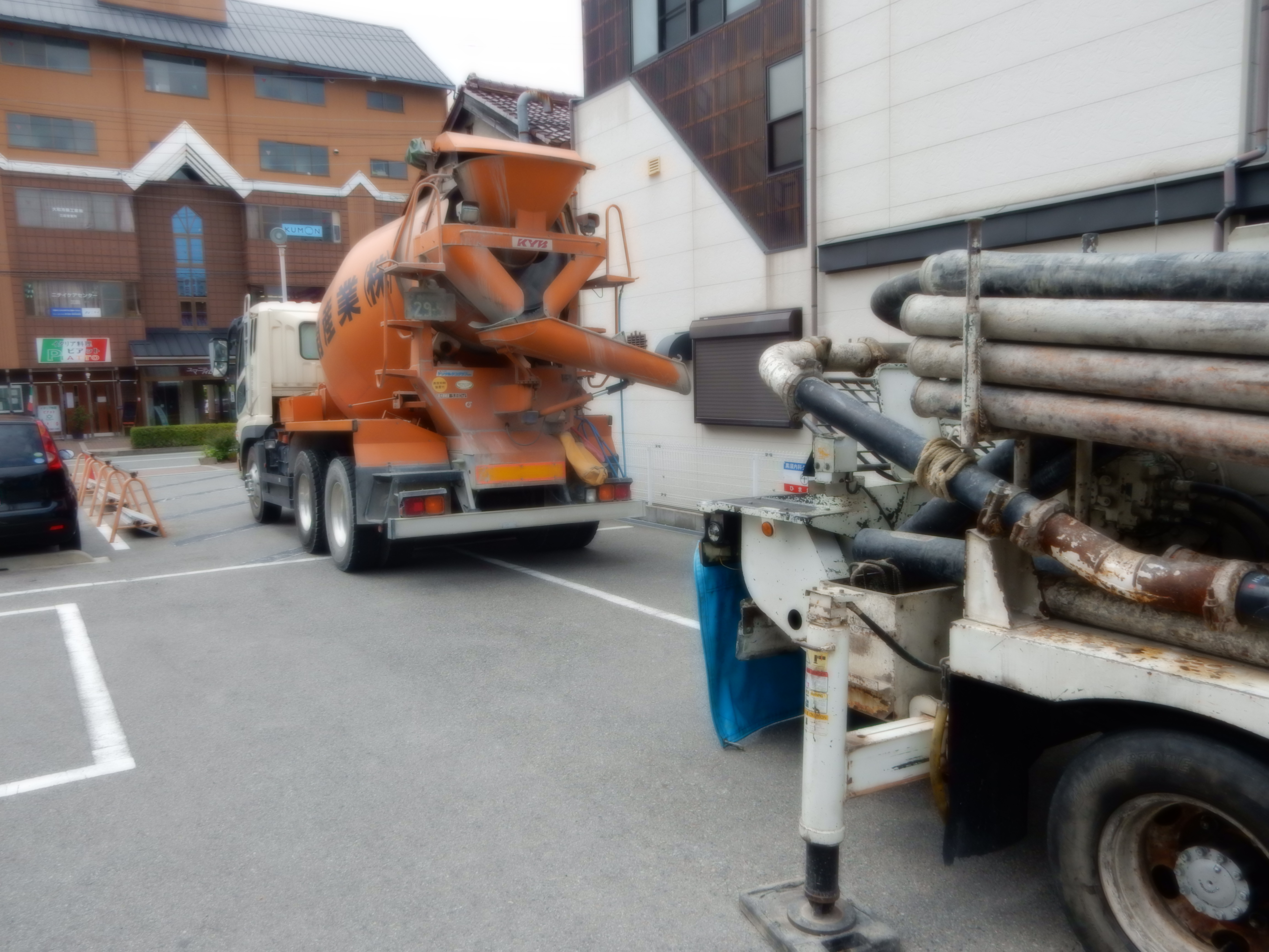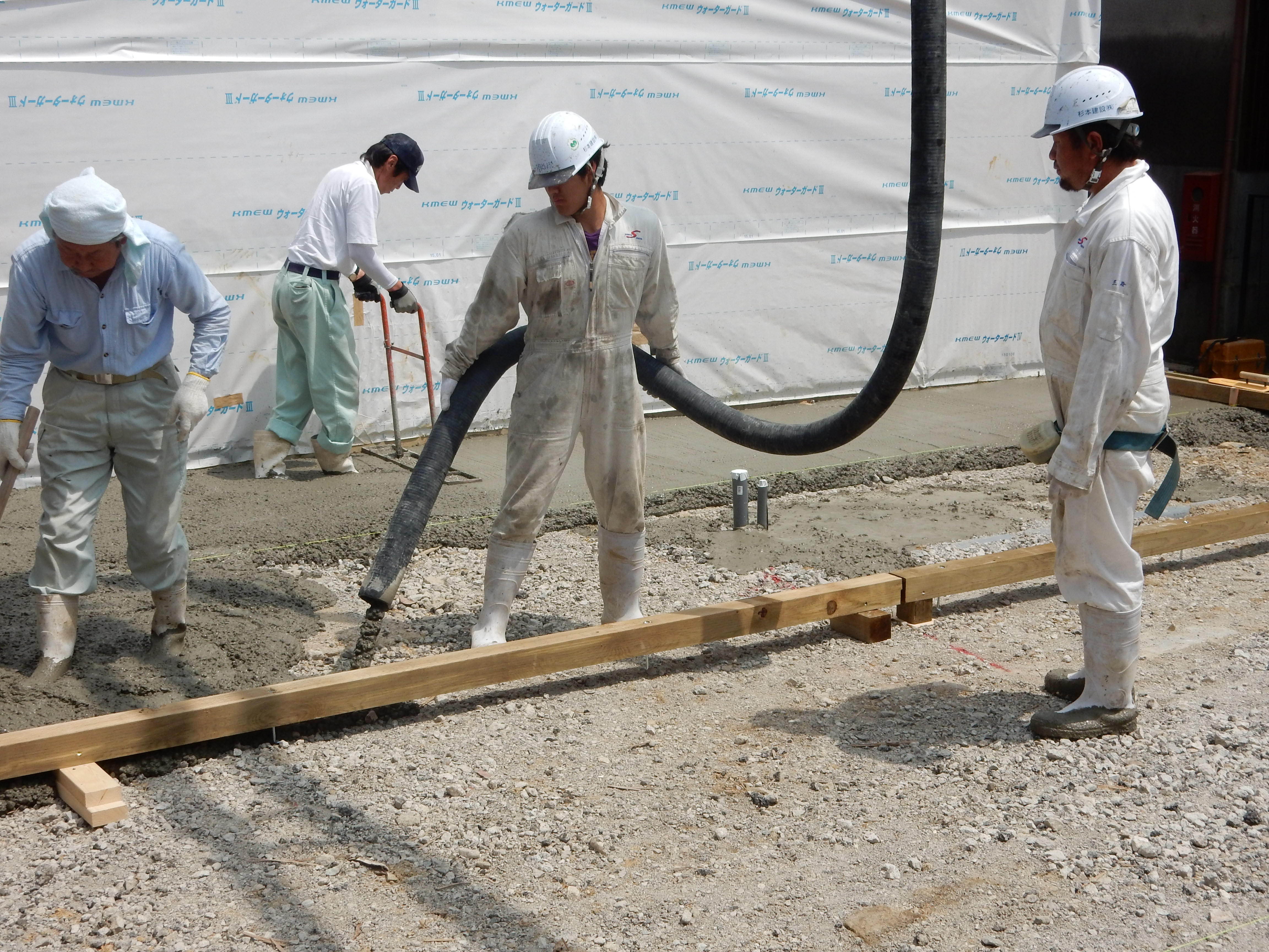 主任 三谷 & 翔吾 です! 2015.06.24 こんにちは、杉本です! 三田駅近くで現場があったので主任三谷の指導振りと入社1年3ヶ月になる 翔吾(甥っ子)の成長を確かめに行って来ました! ポンプ車の設置・ミキサー誘導・先行モルタル準備等を一人で作業していよいよ 生コン打設です!! どううです?? なかなかの上達振りです!! 次回は、リモコンの操作をしながらの作業の指導を主任にしてもらいます(^^) 来年くらいには、運転免許を取得して皆さんの現場で活躍しそうです!!