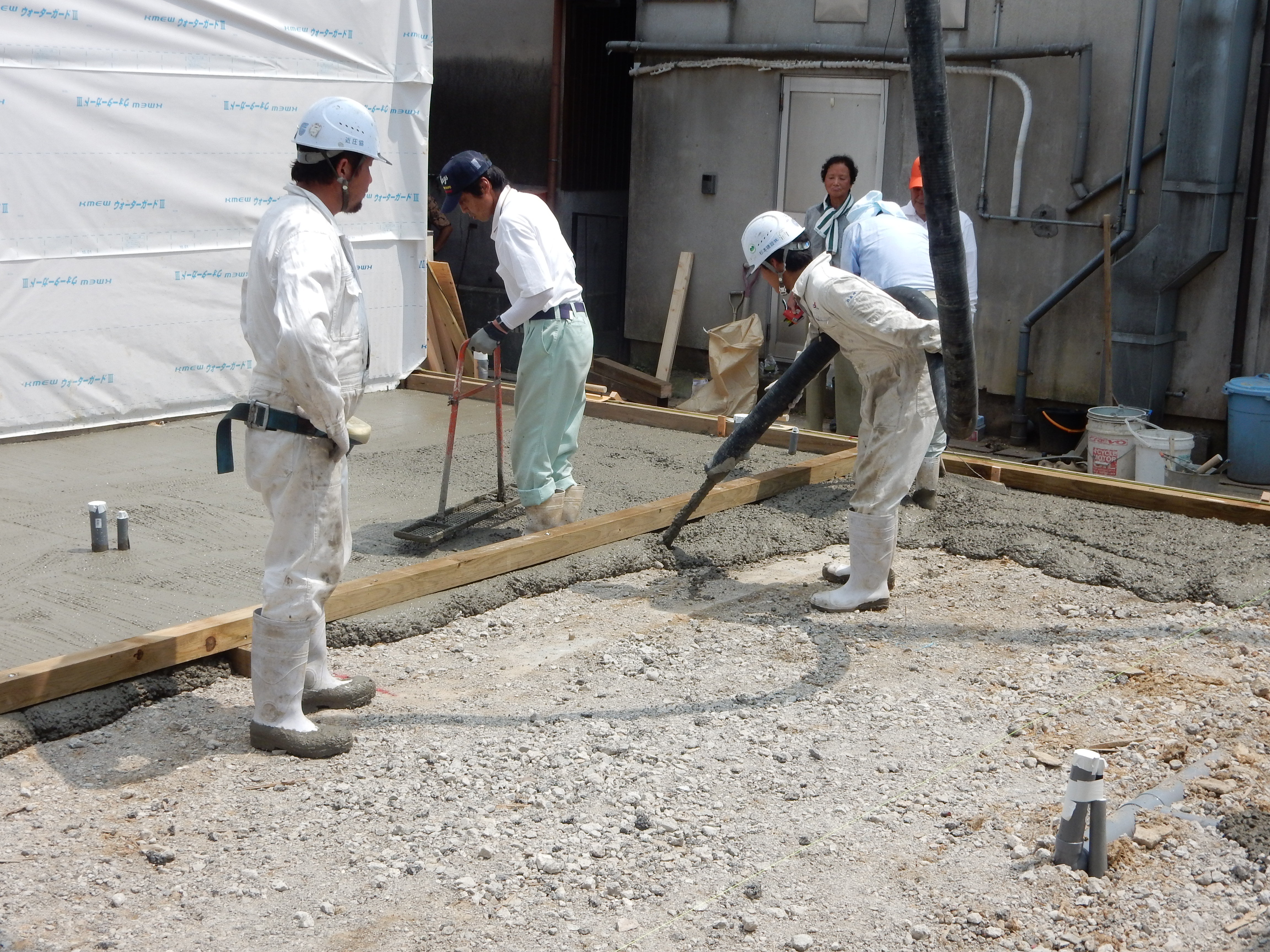 主任 三谷 & 翔吾 です! 2015.06.24 こんにちは、杉本です! 三田駅近くで現場があったので主任三谷の指導振りと入社1年3ヶ月になる 翔吾(甥っ子)の成長を確かめに行って来ました! ポンプ車の設置・ミキサー誘導・先行モルタル準備等を一人で作業していよいよ 生コン打設です!! どううです?? なかなかの上達振りです!! 次回は、リモコンの操作をしながらの作業の指導を主任にしてもらいます(^^) 来年くらいには、運転免許を取得して皆さんの現場で活躍しそうです!! 一覧に戻る