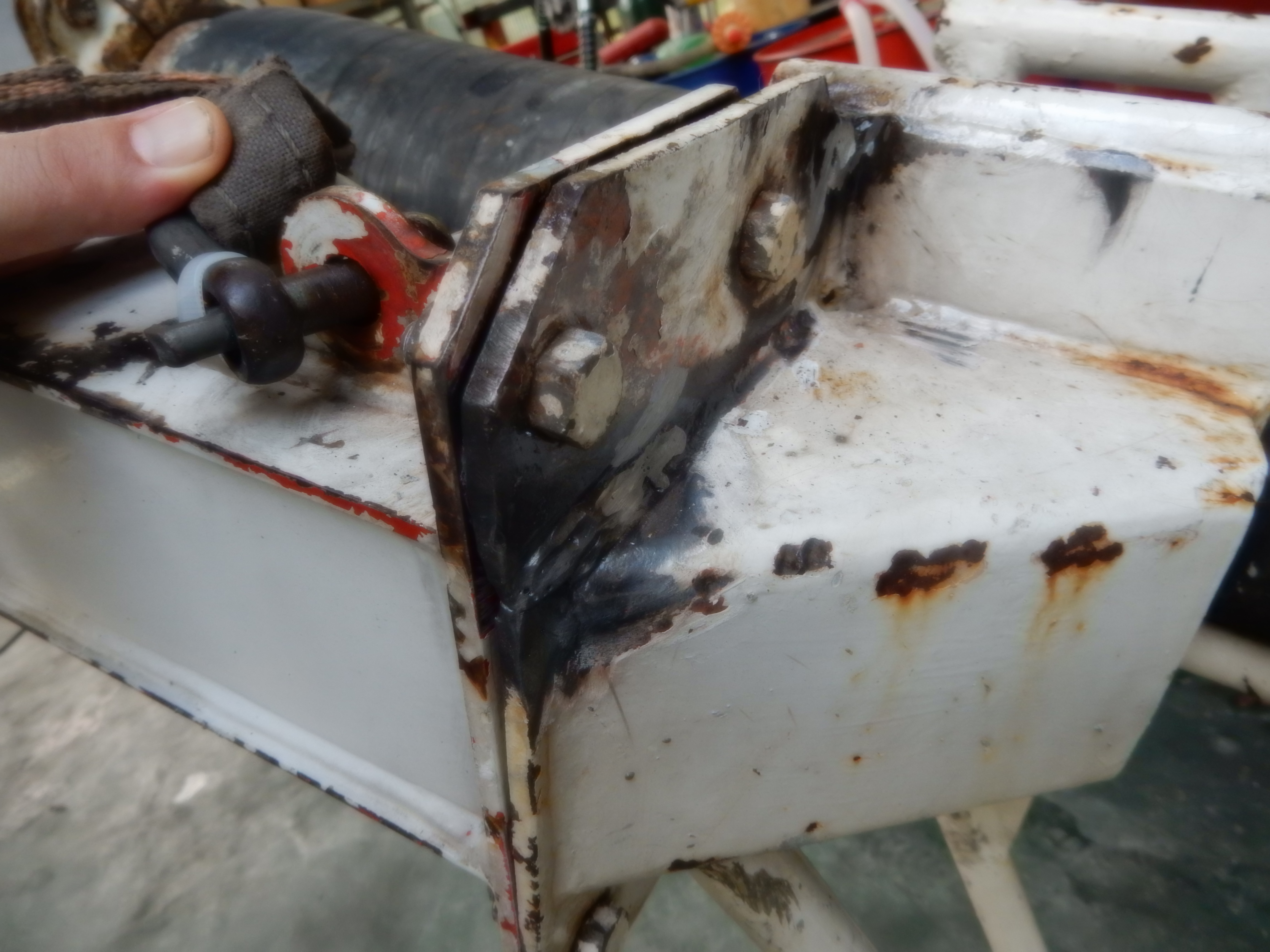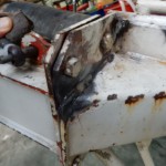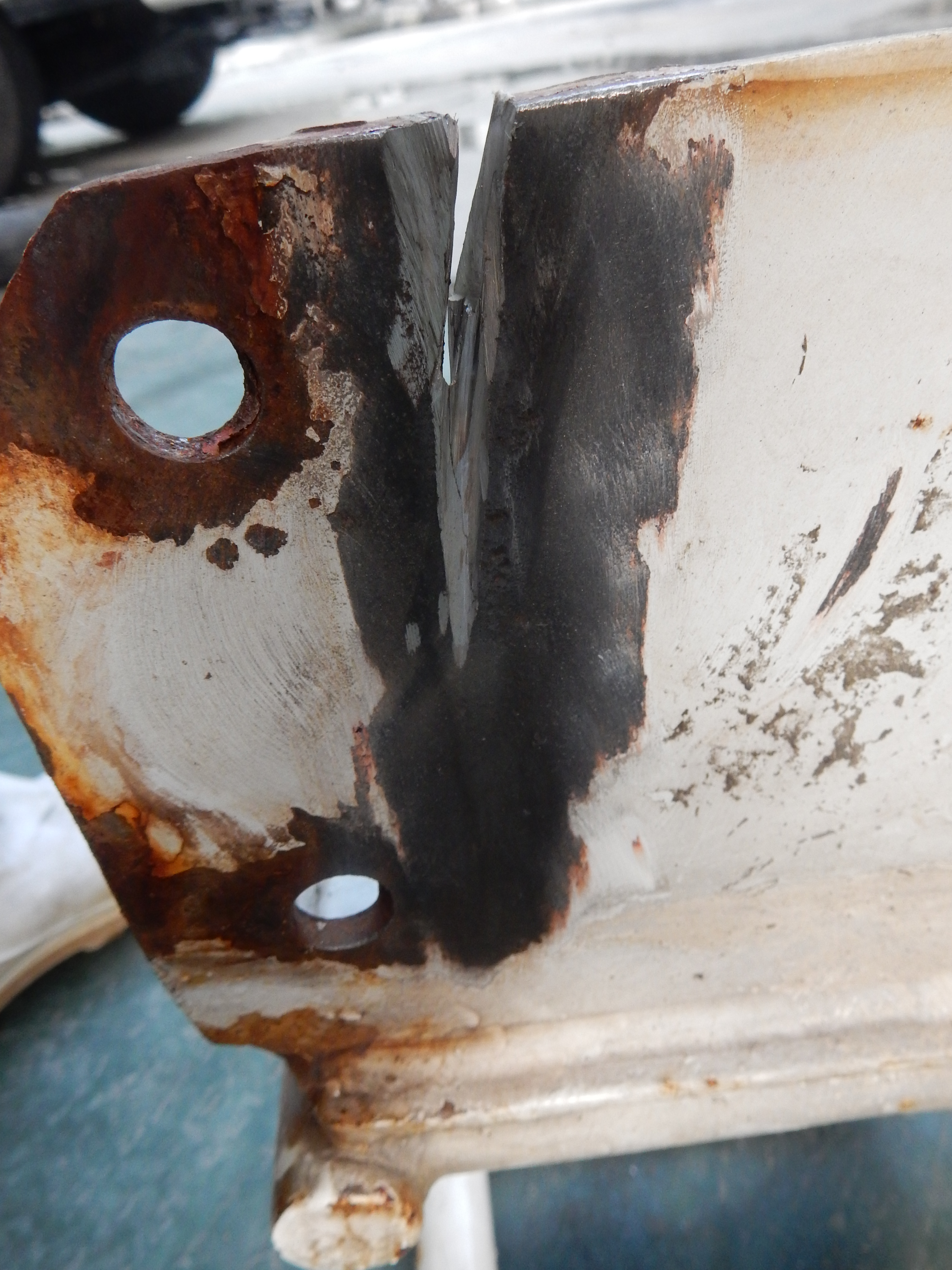 休日整備~! 2015.08.09 こんにちは、杉本です! 最近は、異常に暑くてまた仕事も忙しくて中々ポンプ車の整備・部品交換 などする時間が無かったので休日に4人ほどでポンチュー交換や補修など 朝から昼前までしました! 補修前 補修後 わかりますか? ブームの先端にあるガイドなんですが亀裂が有ったんで V字カットしてから溶接補修しました! 写真で説明するとこんな感じで作業しました!!