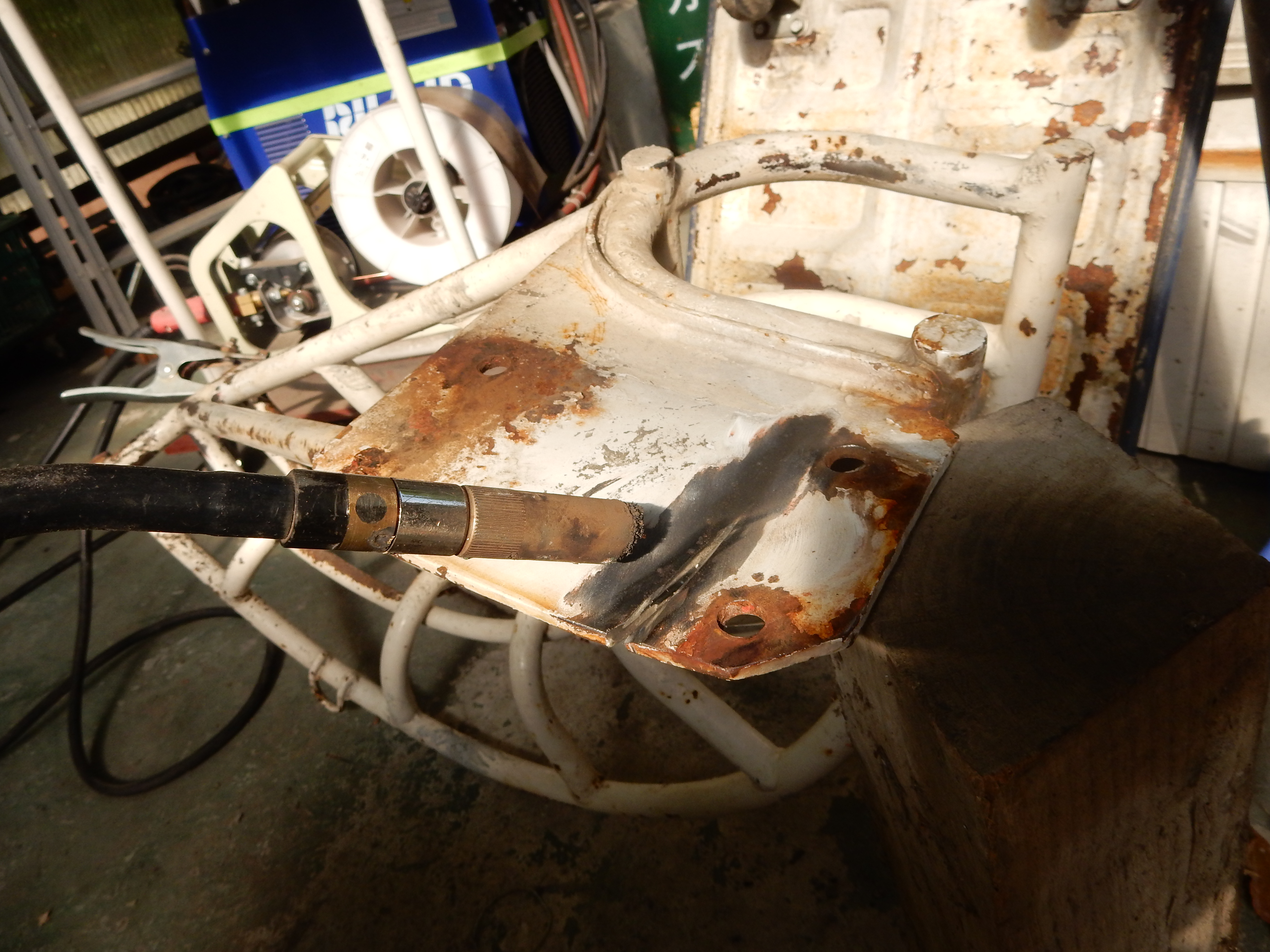 休日整備~! 2015.08.09 こんにちは、杉本です! 最近は、異常に暑くてまた仕事も忙しくて中々ポンプ車の整備・部品交換 などする時間が無かったので休日に4人ほどでポンチュー交換や補修など 朝から昼前までしました! 補修前 補修後 わかりますか? ブームの先端にあるガイドなんですが亀裂が有ったんで V字カットしてから溶接補修しました! 写真で説明するとこんな感じで作業しました!! 一覧に戻る