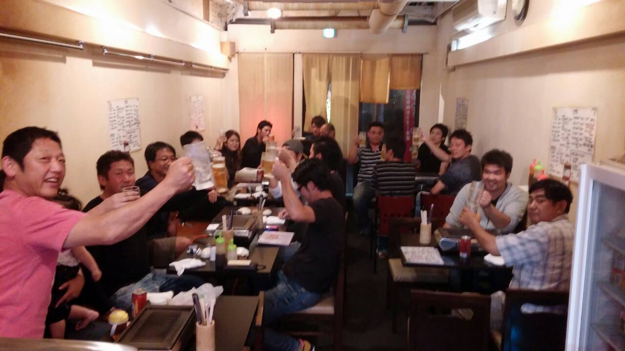 焼肉大会 in「よっつん」 2015.10.01 こんにちは、杉本です。 先週の土曜(9月26日)に9月恒例の焼肉大会を三田駅前の 「ホルモン よっつん」で開催しました! とりあえず、みんなで乾杯!! 今回は総勢21名で (^^) 美味しそうでしょ~ 先週の写真なんで今(10/1 19:00)にブログ入力しながら 口の中に唾液が出てきてるのをこらえながらパソコンをしております~ 今回もジャンケン大会で現金の争奪戦で盛り上がりました~ 米谷・小西が賞金をゲットして喜んでおりました (^^) 来年もまた焼肉大会を出来るようにみんなで頑張っていきます!!