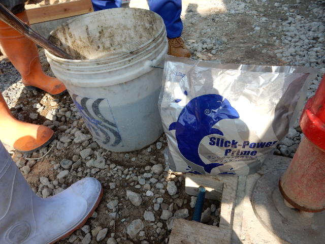 この大型ポンプにも「スリックパワー」をモルタル替わりに使用されてました!!