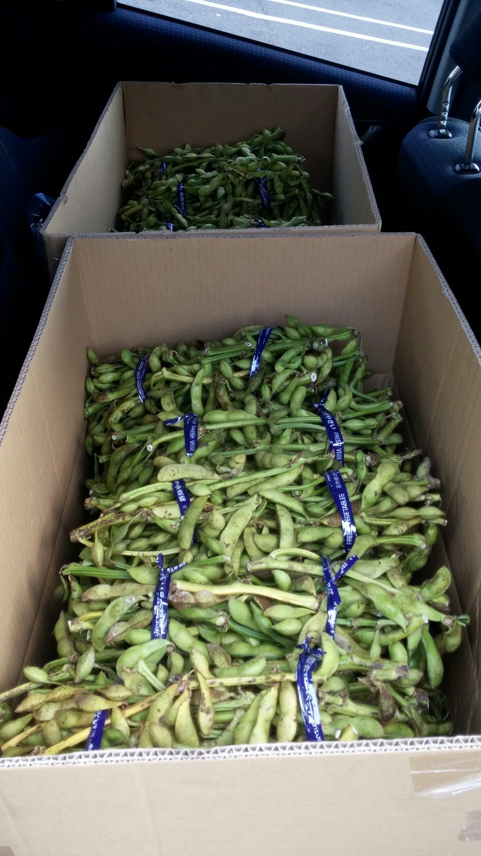 積みきれないほど枝豆を大量購入してみたりし合計358束・箱詰め18箱