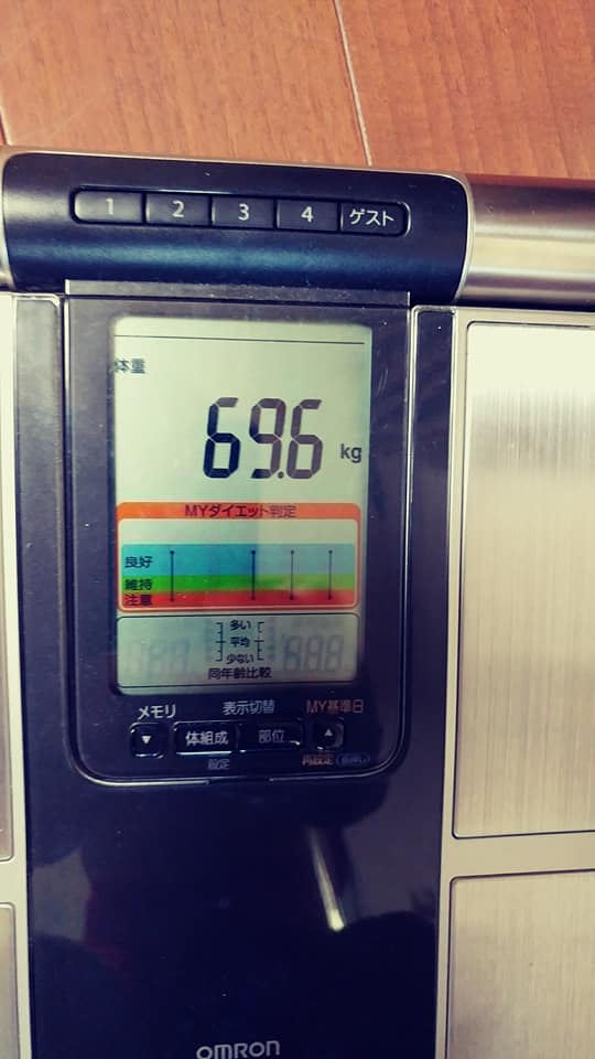 私事ですが・・・ 2017.06.10 こんにちは、杉本です。 去年の8月1日よりダイエットを始めました。 当初の体重が 80.1㎏から開始し今年の6月1日の 健康診断に70㎏切りを目指して挑戦しました。 ウエスト97.5㎝ 体脂肪率 30.5%でちょっと中年体型からのスタート~ 今年の5月3日に目標の70㎏切りに成功後、5月からほぼ毎日筋トレして少し体重が 増加してますが体脂肪率は、20%と少し切りました!!(^^)v 最近は、朝の6時~7時にこんな感じで筋トレしてます! ダイエットから学んだことは、続けること目標を持つことの大事さに気付かせて もらいました! これを今後は、仕事に活かせていきたいと思います!! 一覧に戻る